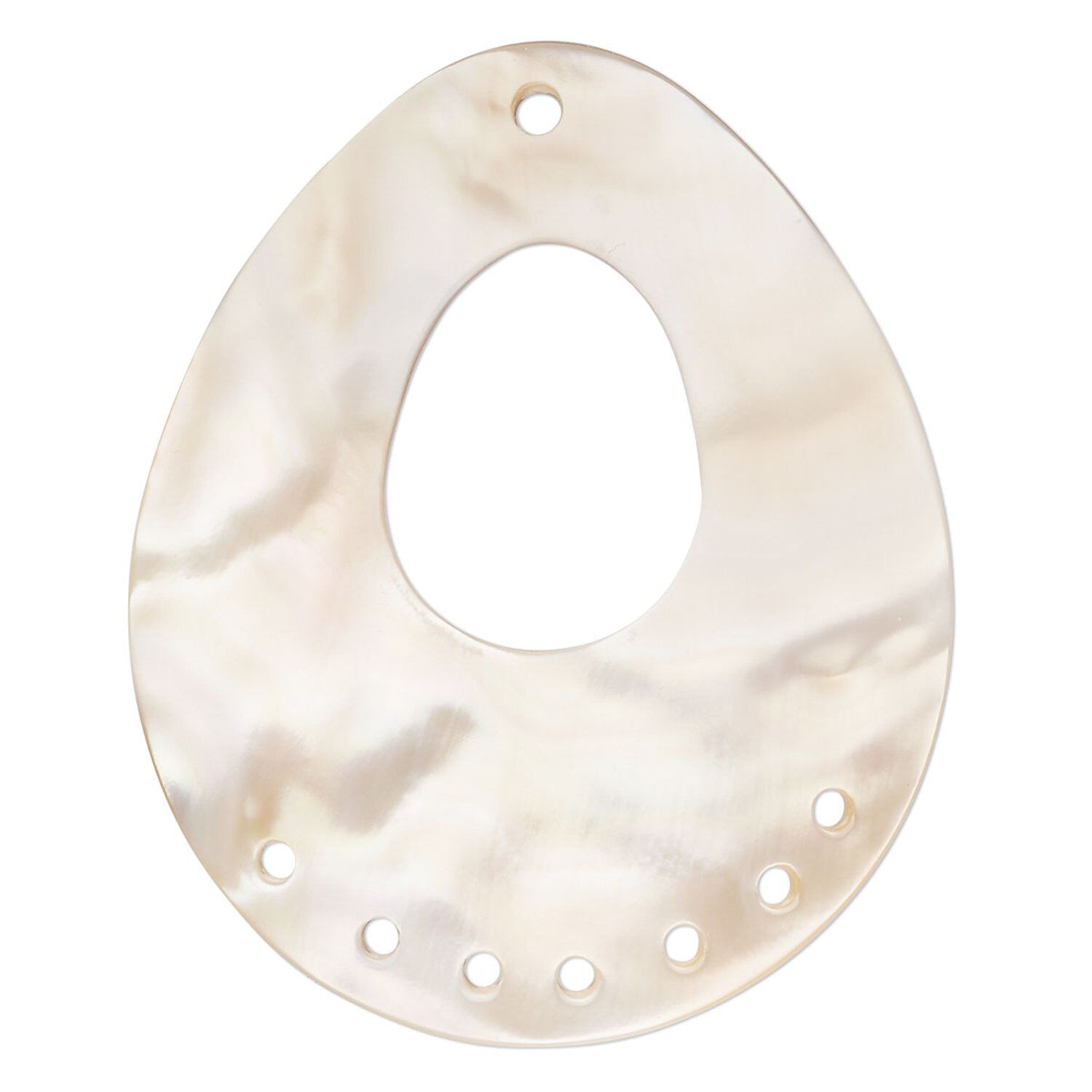 Focal, shell (natural), 56x45mm domed teardrop, Mohs hardness 3-1/2. Sold individually.