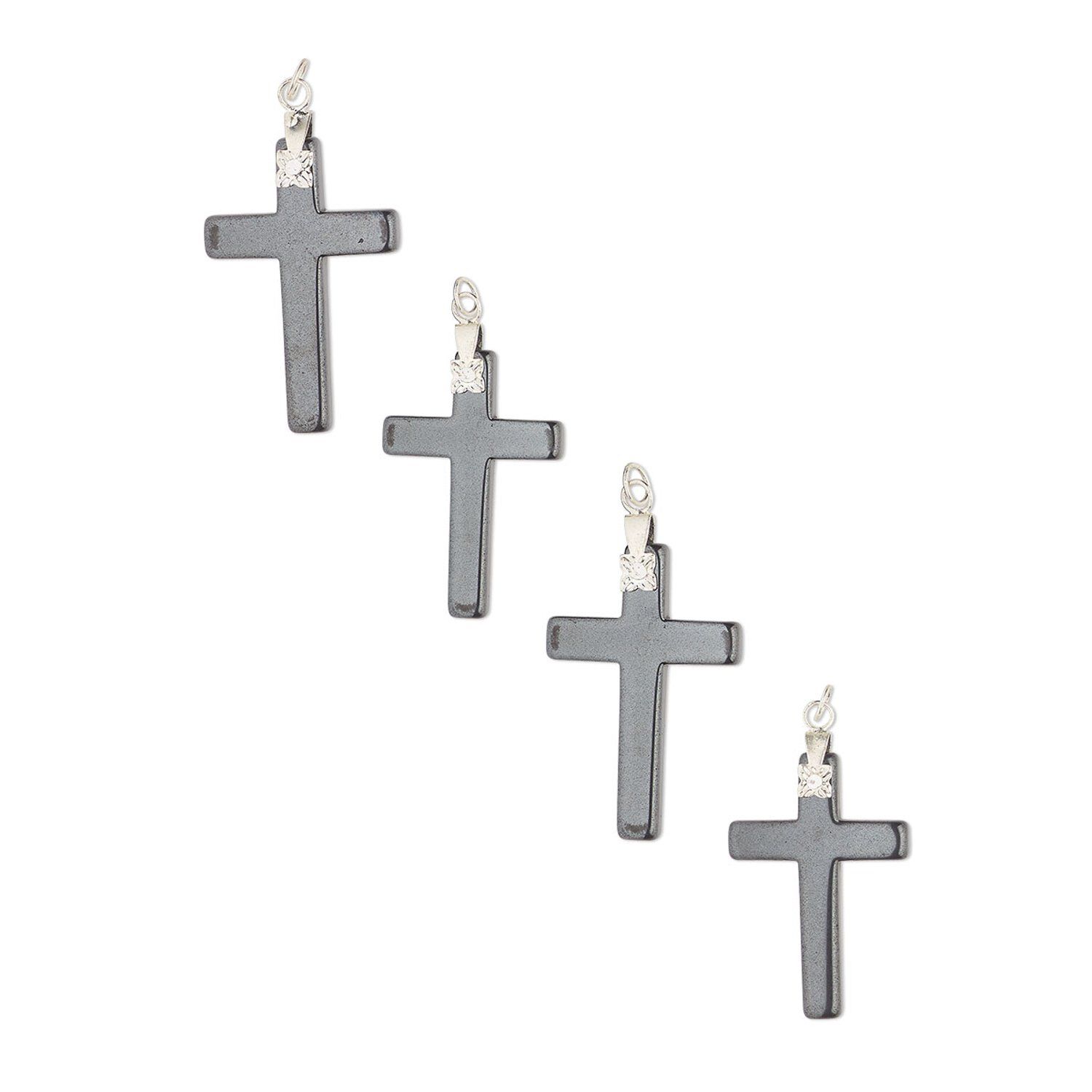 Hemalyke™ / "pewter" (zinc-based alloy) 1pkg4, silver- finished cross focal 33x22mm