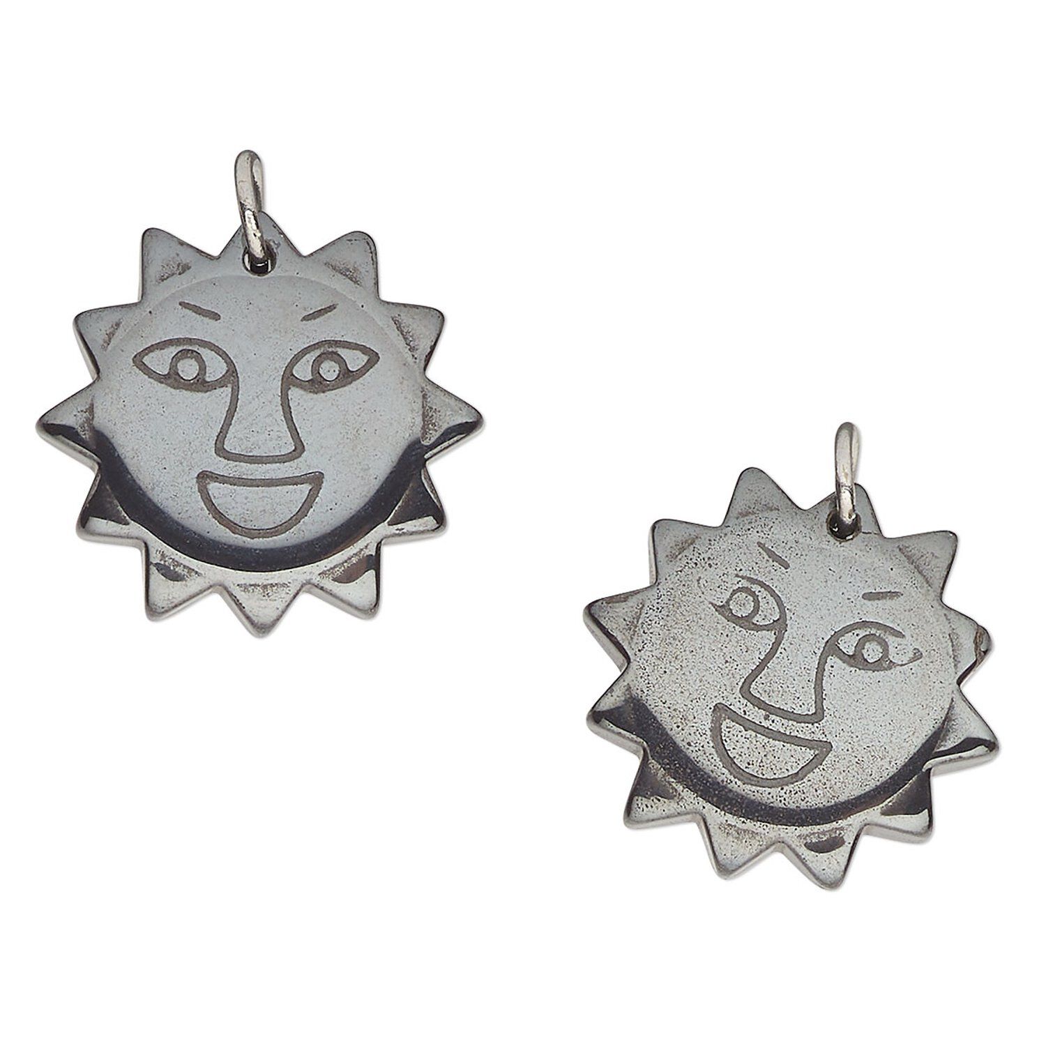 Hemalyke™ / "pewter" (zinc-based alloy) 1pkg2, silver-finished 1-sided carved sun drop 23mm