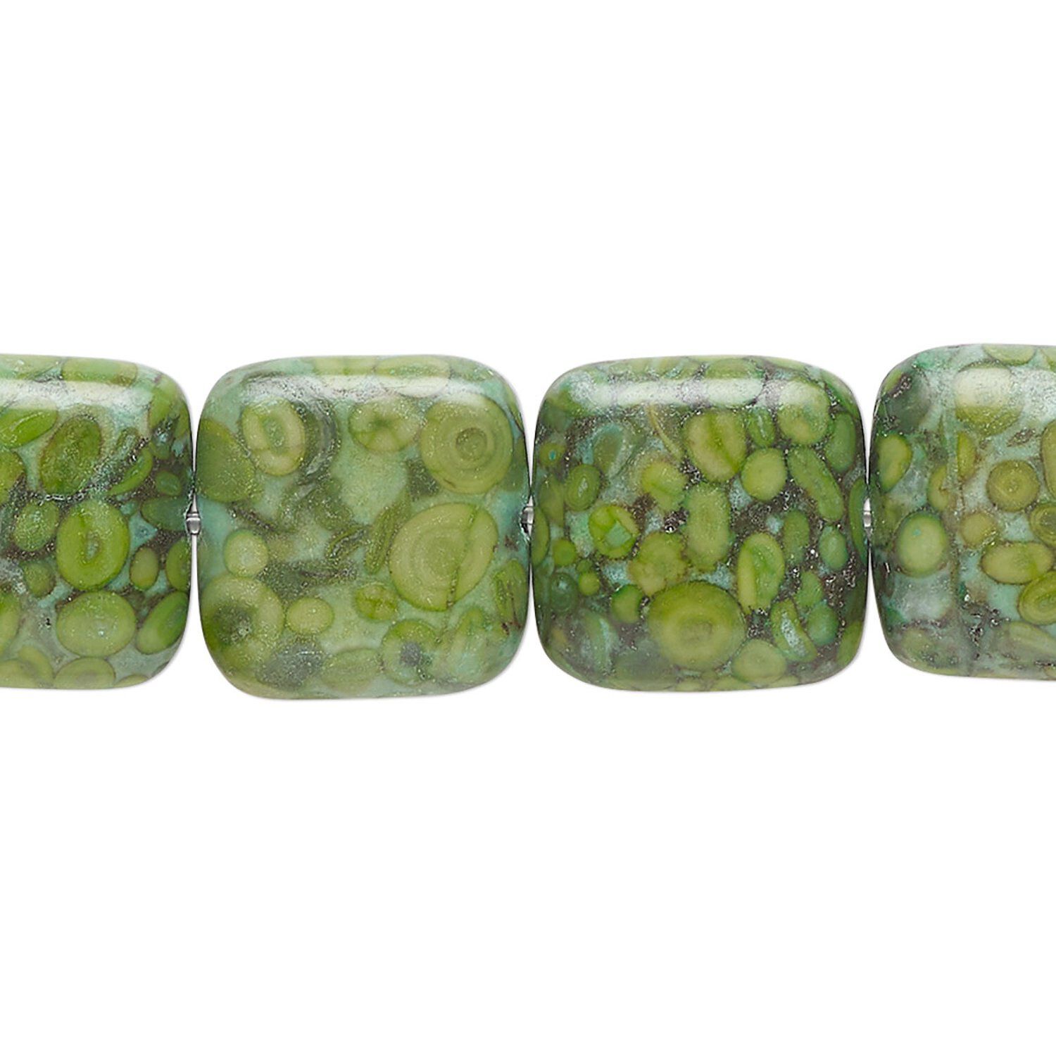 Fossil stone 1pkg1, puffed square bead 7 inch 14mm