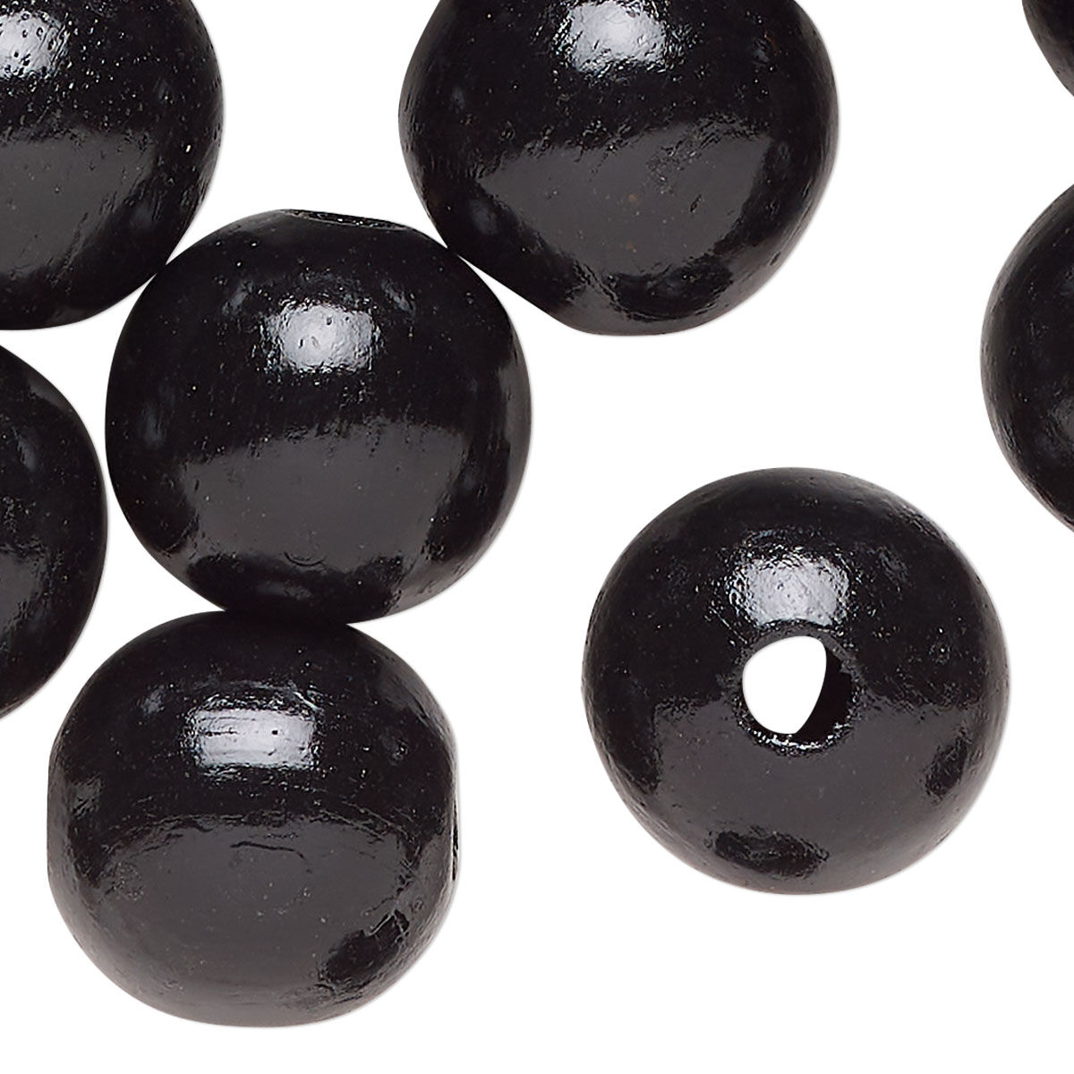 Bead, wood (dyed/waxed), black, 18mm round. Sold per pkg of 100.