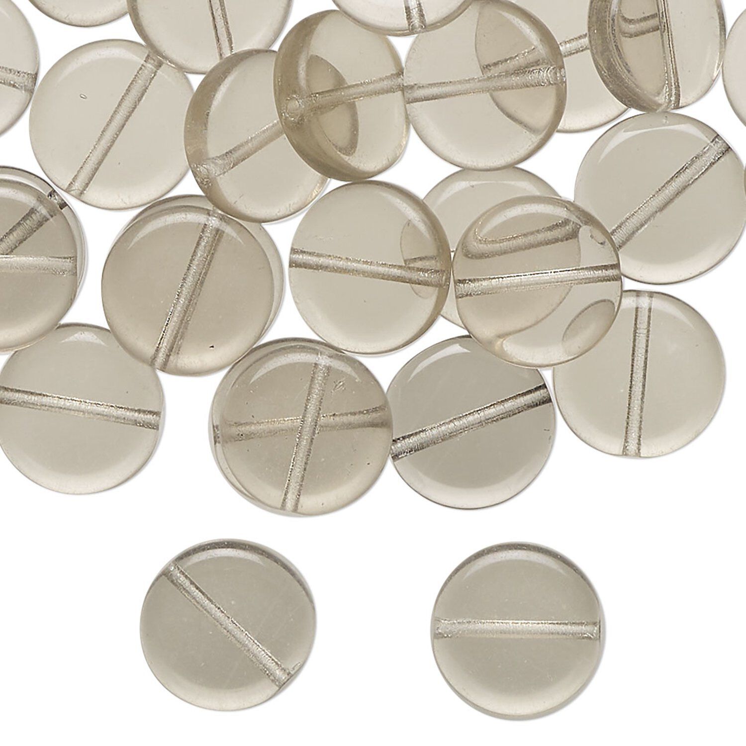 Bead, pressed glass, transparent smoke, 10mm flat round. Sold per 1-ounce pkg, approximately 50 beads.