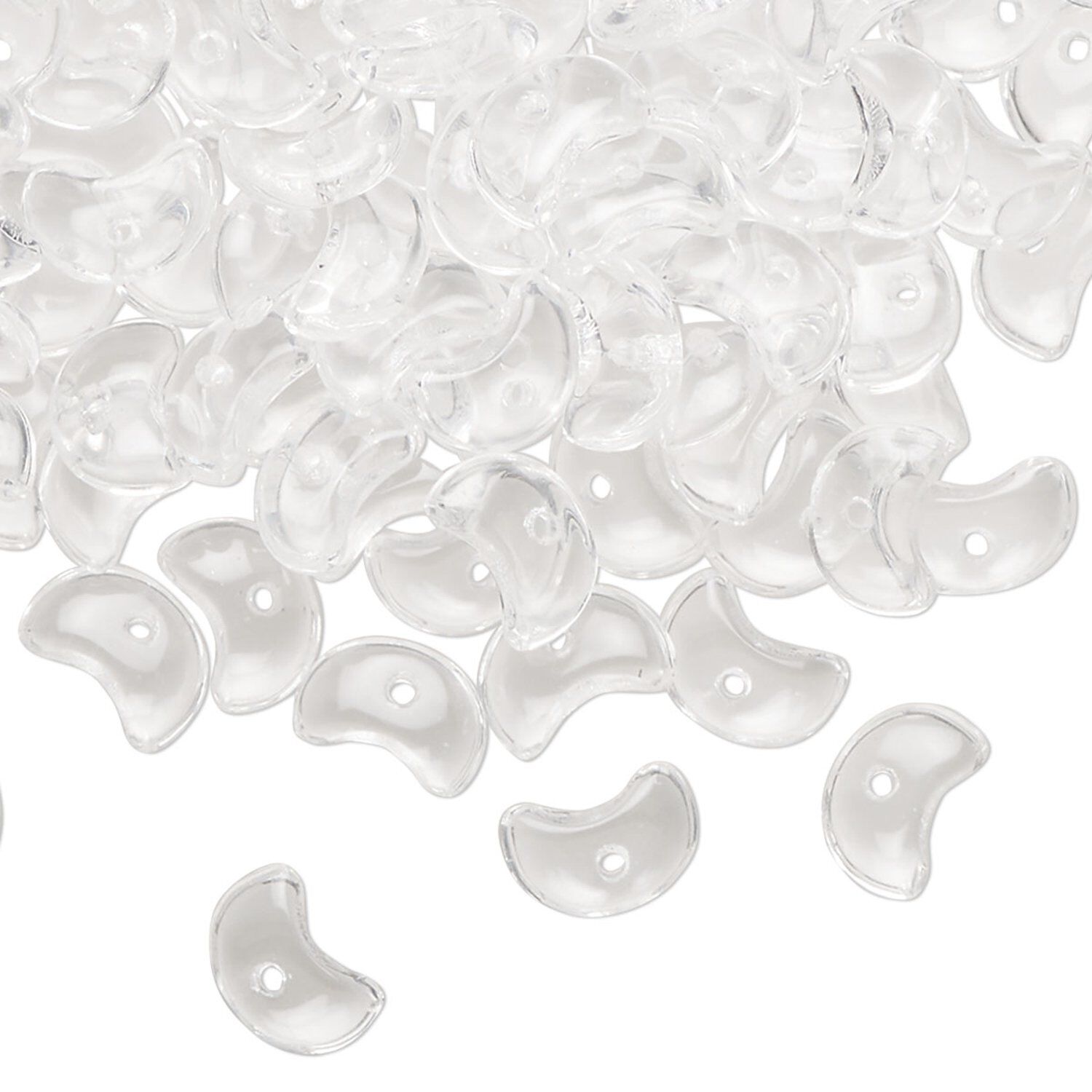 Bead, Czech pressed glass, clear, 8x5mm flat crescent. Sold per 1-ounce pkg, approximately 200 beads.