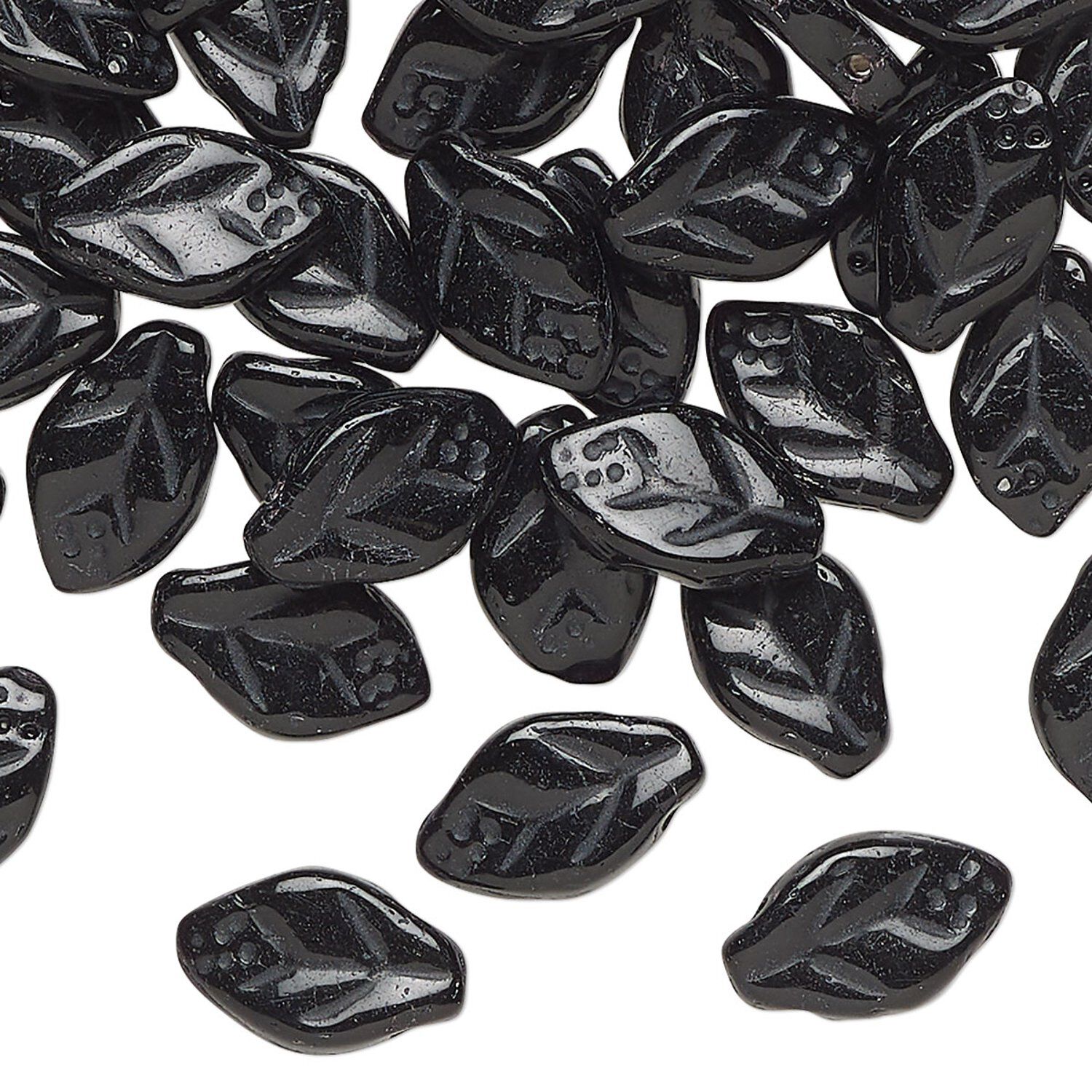 Bead, Czech pressed glass, opaque black, 12x8mm flat leaf. Sold per 1-ounce pkg, approximately 80 beads.