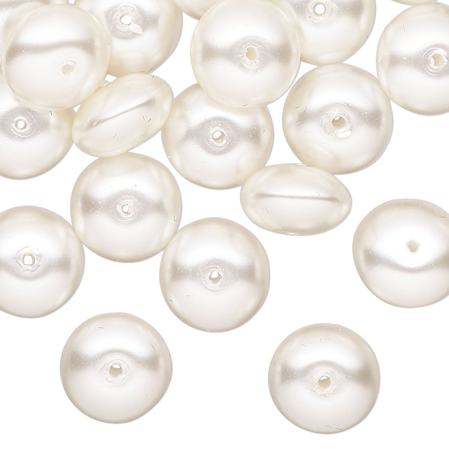 Bead, glass pearl, coated glass, white, 11x7mm saucer. Sold per 12 " strand, approximately 50 beads.