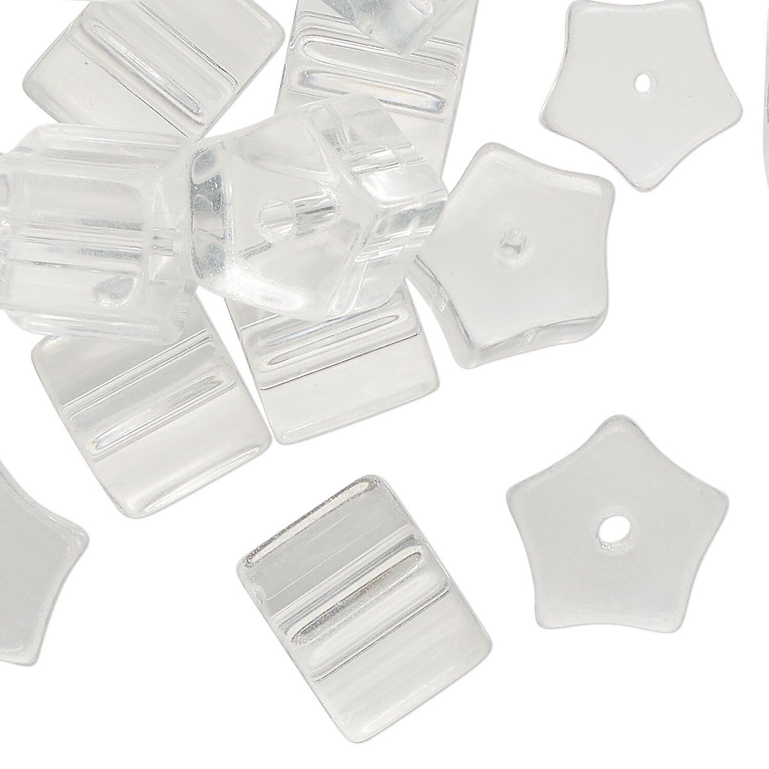 Bead, pressed glass, clear, 11x10mm pentagon. Sold per 2-ounce pkg, approximately 25 beads.