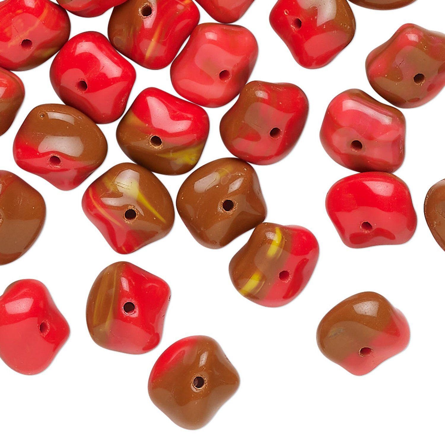 Bead, Czech pressed glass, opaque brown and red, 8x7mm freeform rondelle. Sold per 1-ounce pkg, approximately 45 beads.