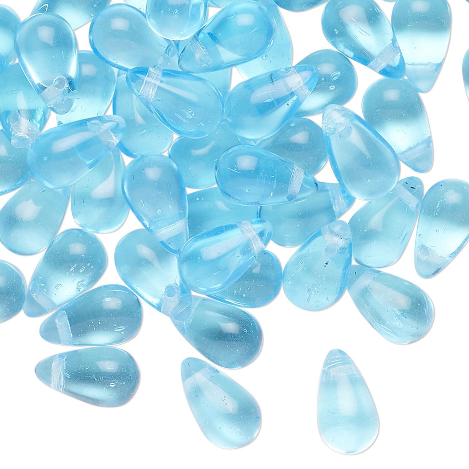 Bead, Czech pressed glass, translucent sky blue, 10x6mm top-drilled teardrop. Sold per 1-ounce pkg, approximately 80 beads.