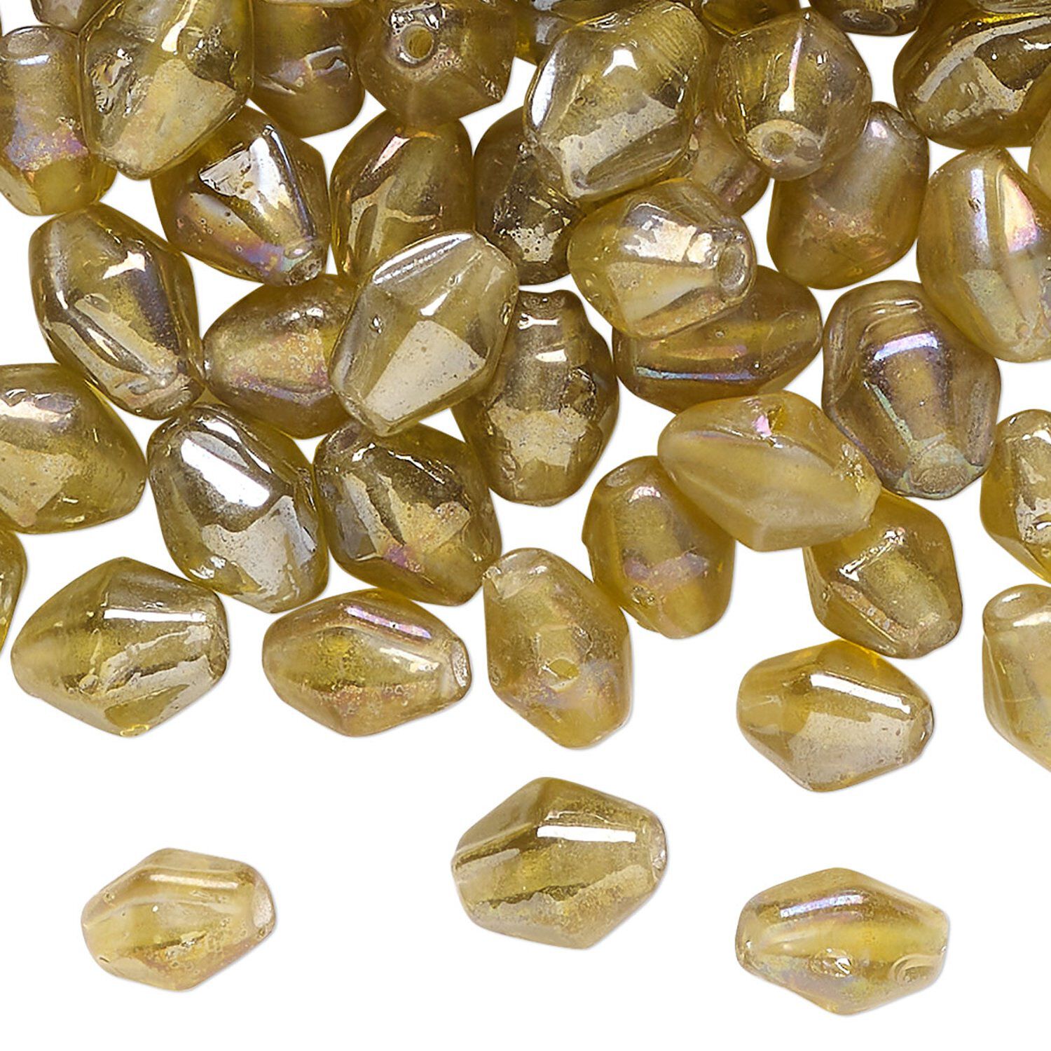 Bead, glass, translucent iridescent dark yellow, 9x7mm double cone. Sold per 2-ounce pkg, approximately 130 beads.