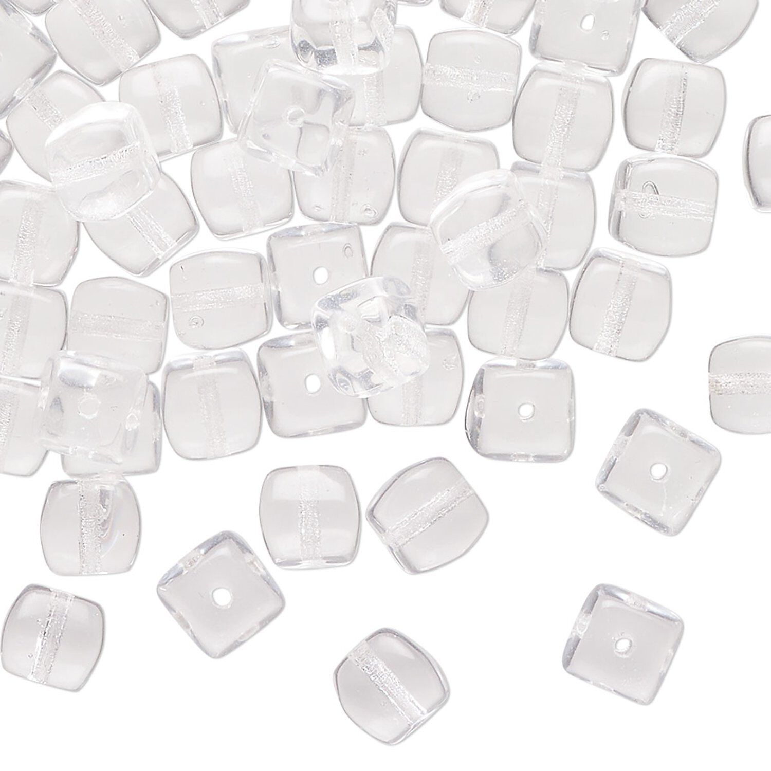 Bead, pressed, glass, transparent clear, 6mm cube. Sold per 1 ounce pkg, approximately 78 beads.