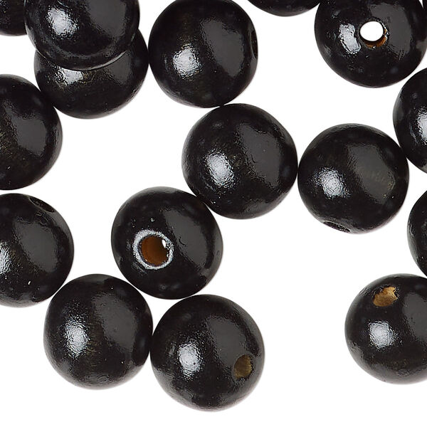 Bead, wood (dyed/waxed), black, 12mm round. Sold per pkg of 250.