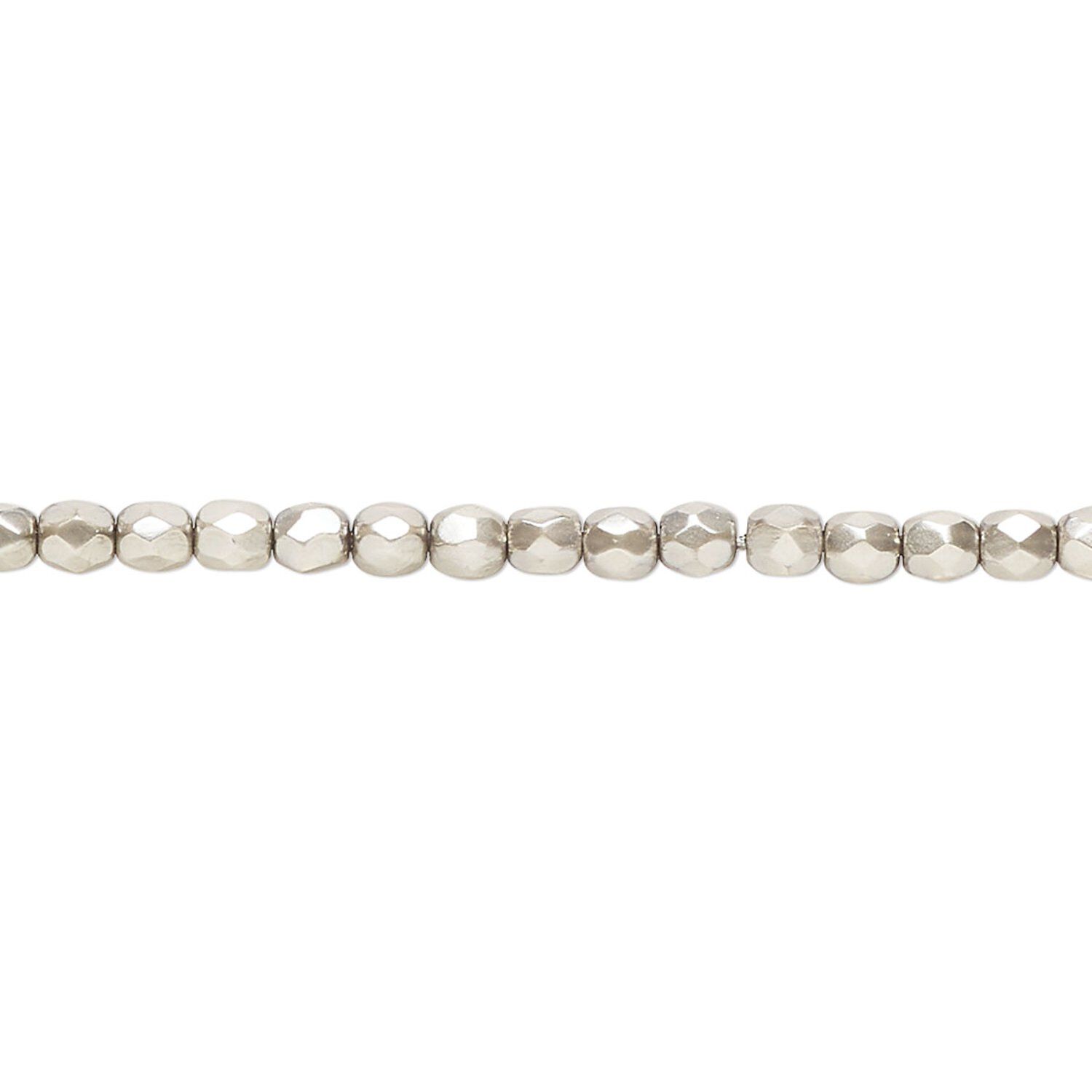 Bead, Czech fire-polished, metallic glass, opaque silver, 3mm faceted round. Sold per 18-inch strand, approximately 150 beads.