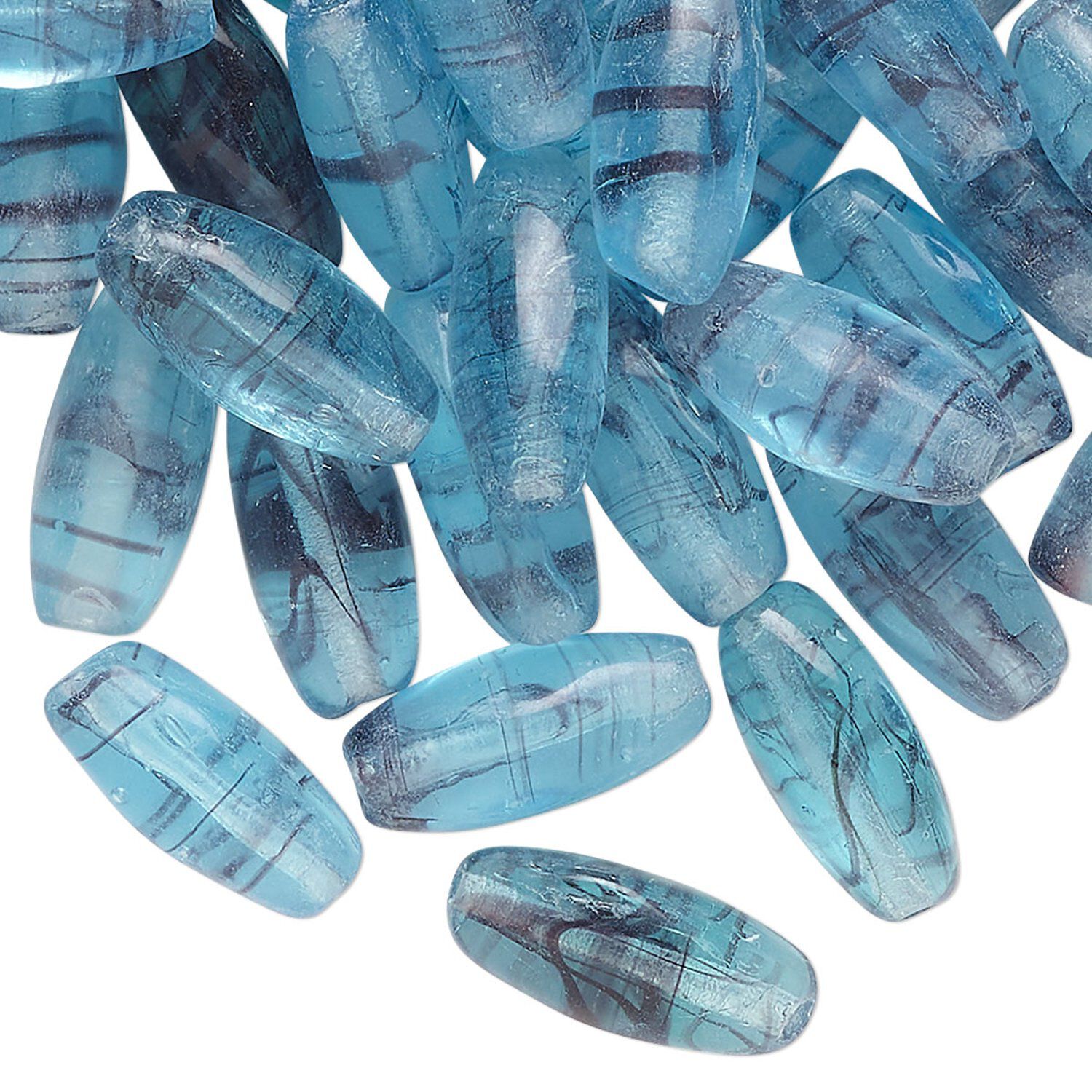 Bead, glass, translucent blue and purple, 15x7mm oval. Sold per 2-ounce pkg, approximately 60 beads.