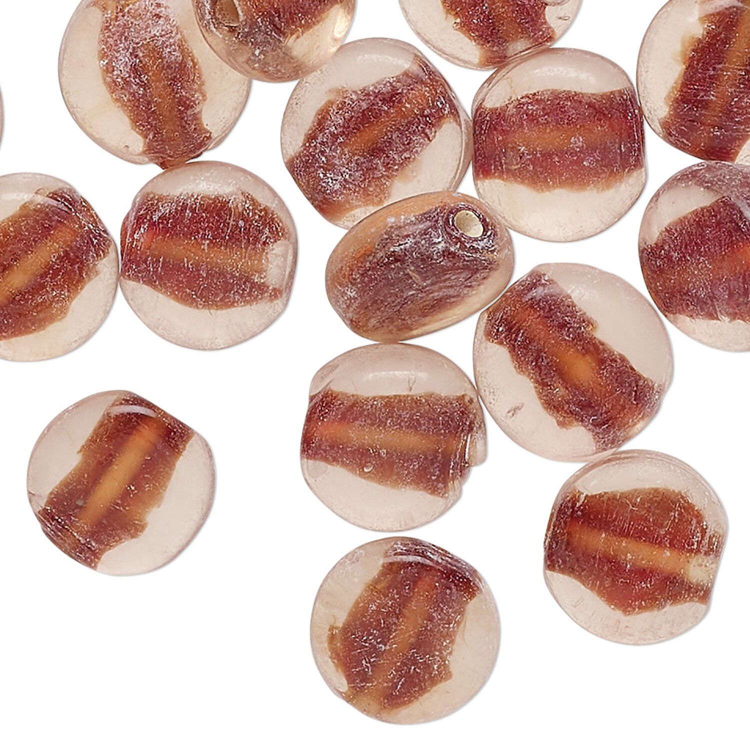 Bead, glass, translucent purple and orange, 11x10mm flat round. Sold per 2-ounce pkg, approximately 45 beads.