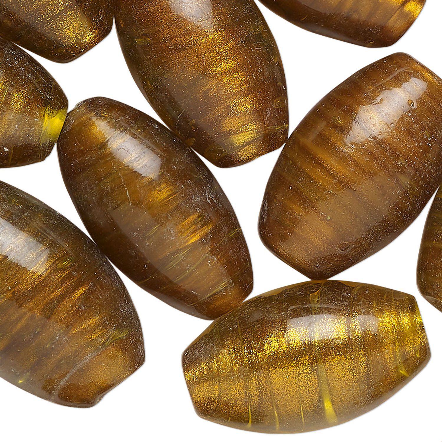 Bead, lampworked glass, translucent copper, 24x14mm oval with copper-colored glitter. Sold per pkg of 20 beads.