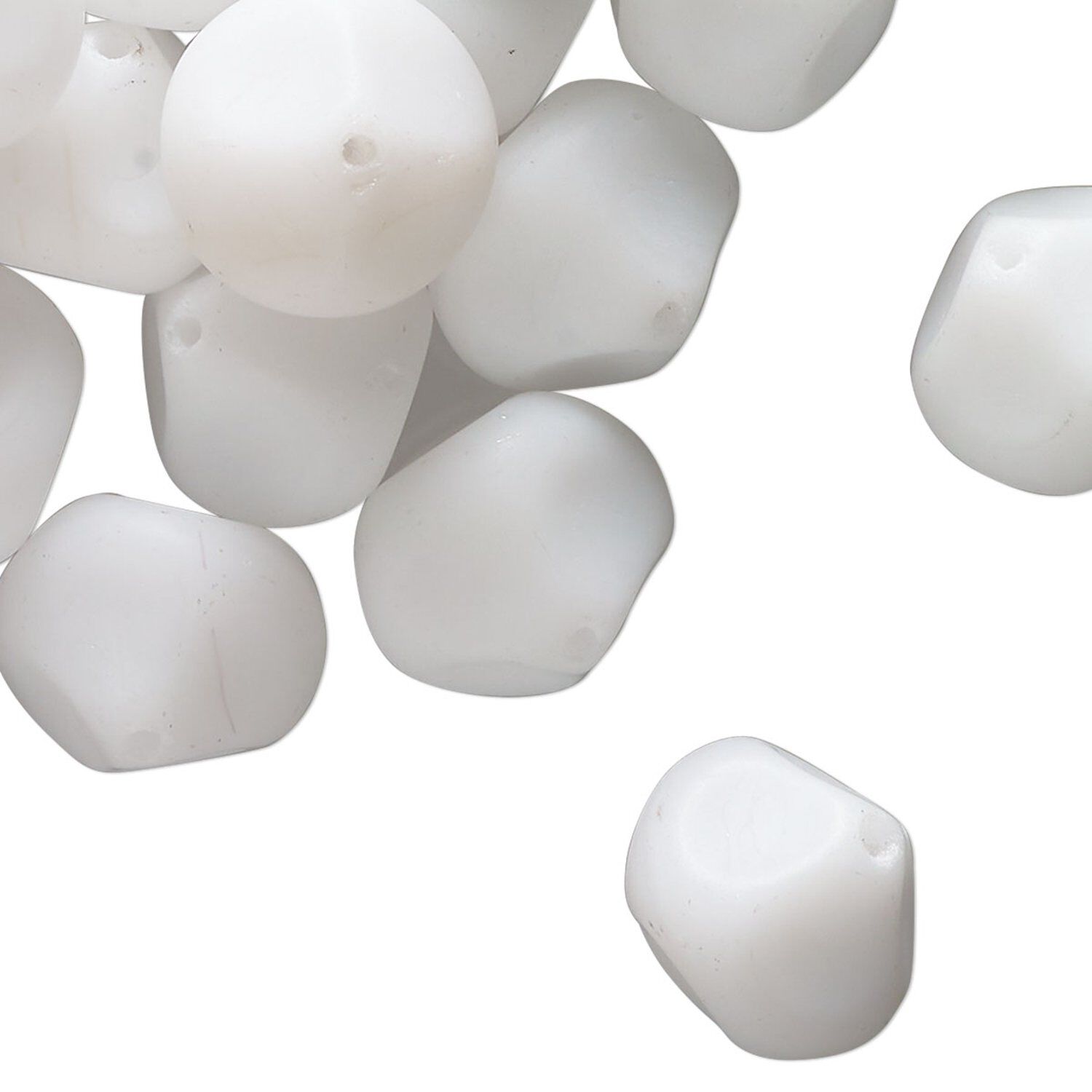 Bead, glass, opaque matte white, 14x12mm faceted saucer. Sold per 2-ounce pkg, approximately 25 beads.