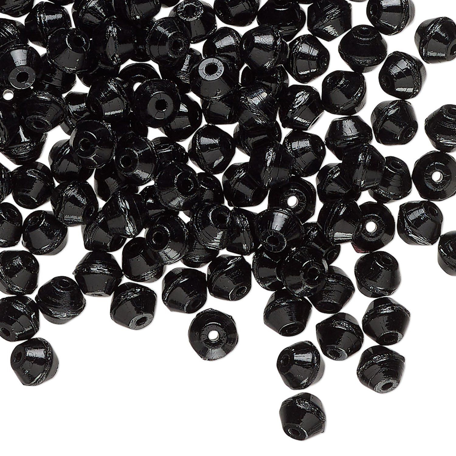 Bead, Czech pressed glass, opaque black, 4mm bicone. Sold per 1-ounce pkg, approximately 265 beads.