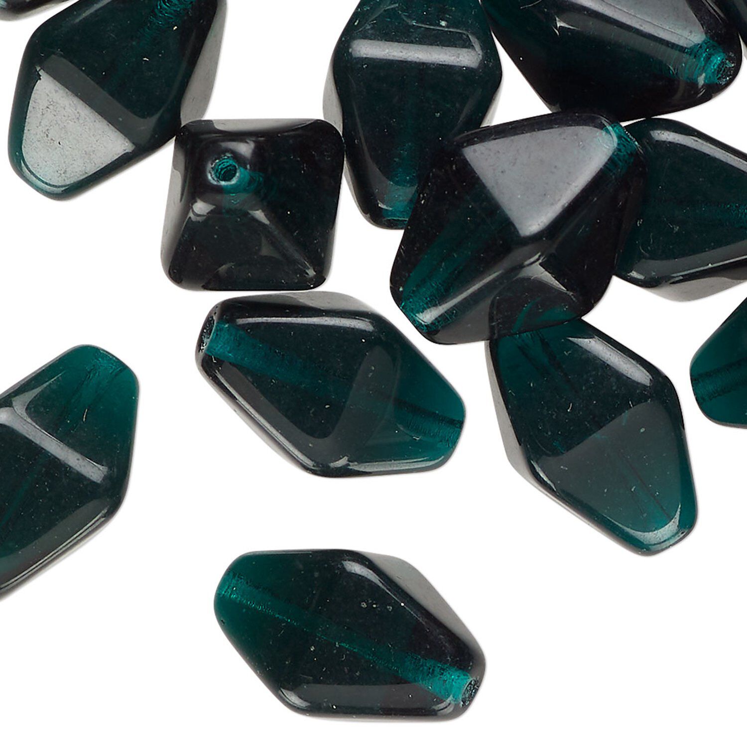 Bead, Czech pressed glass, translucent dark green, 17x13mm double cone. Sold per 2-ounce pkg, approximately 25 beads.