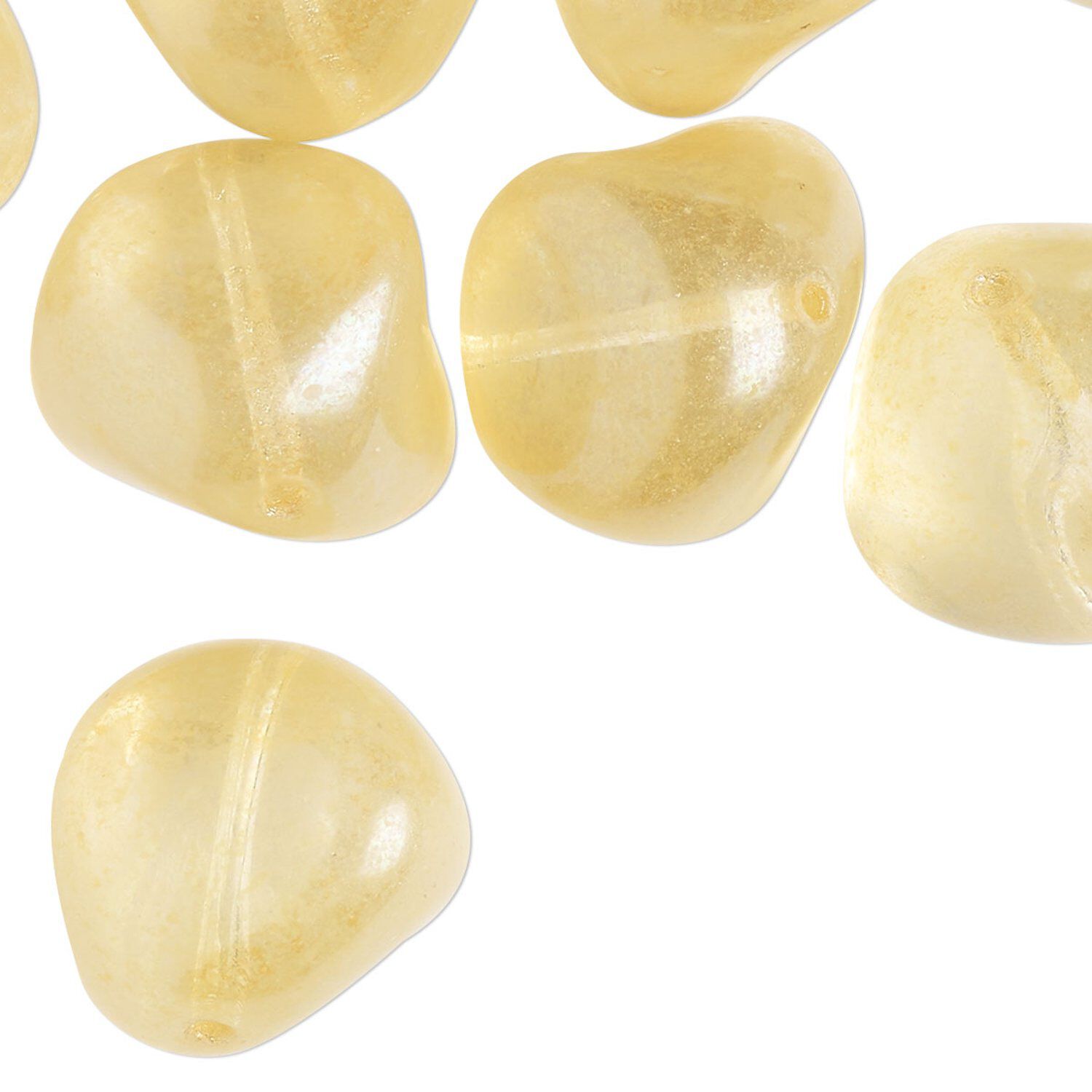 Bead, glass, translucent pale yellow, nugget. Sold per pkg of 10.