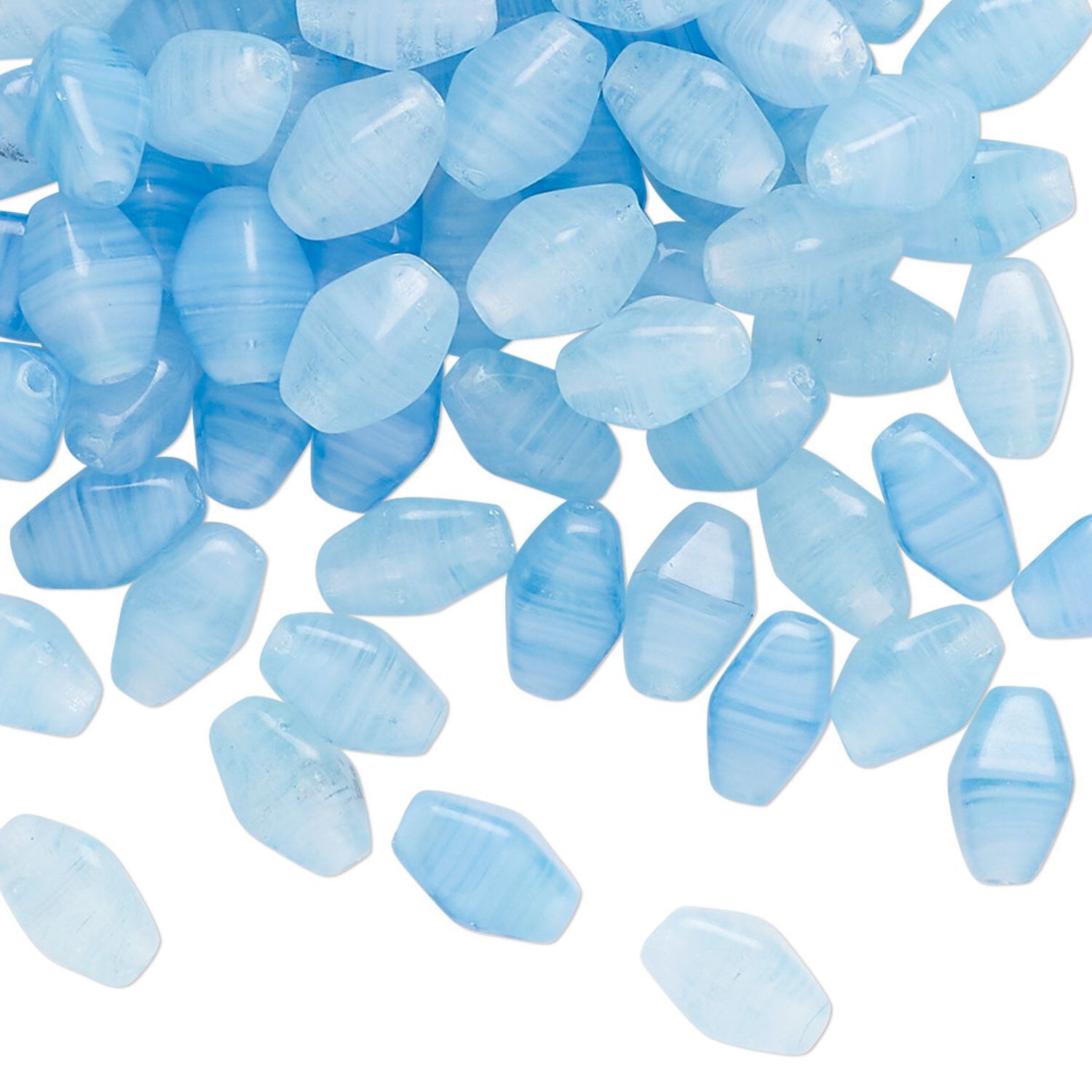 Bead, Czech pressed glass, translucent sky blue, 8x5mm double cone with swirl pattern. Sold per 1-ounce pkg, approximately 110 beads.