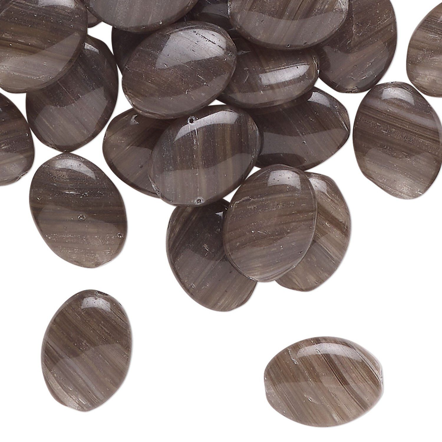 Bead, Czech pressed glass, translucent dark grey and clear, 12x9mm puffed oval with swirl pattern. Sold per 1-ounce pkg, approximately 39 beads.
