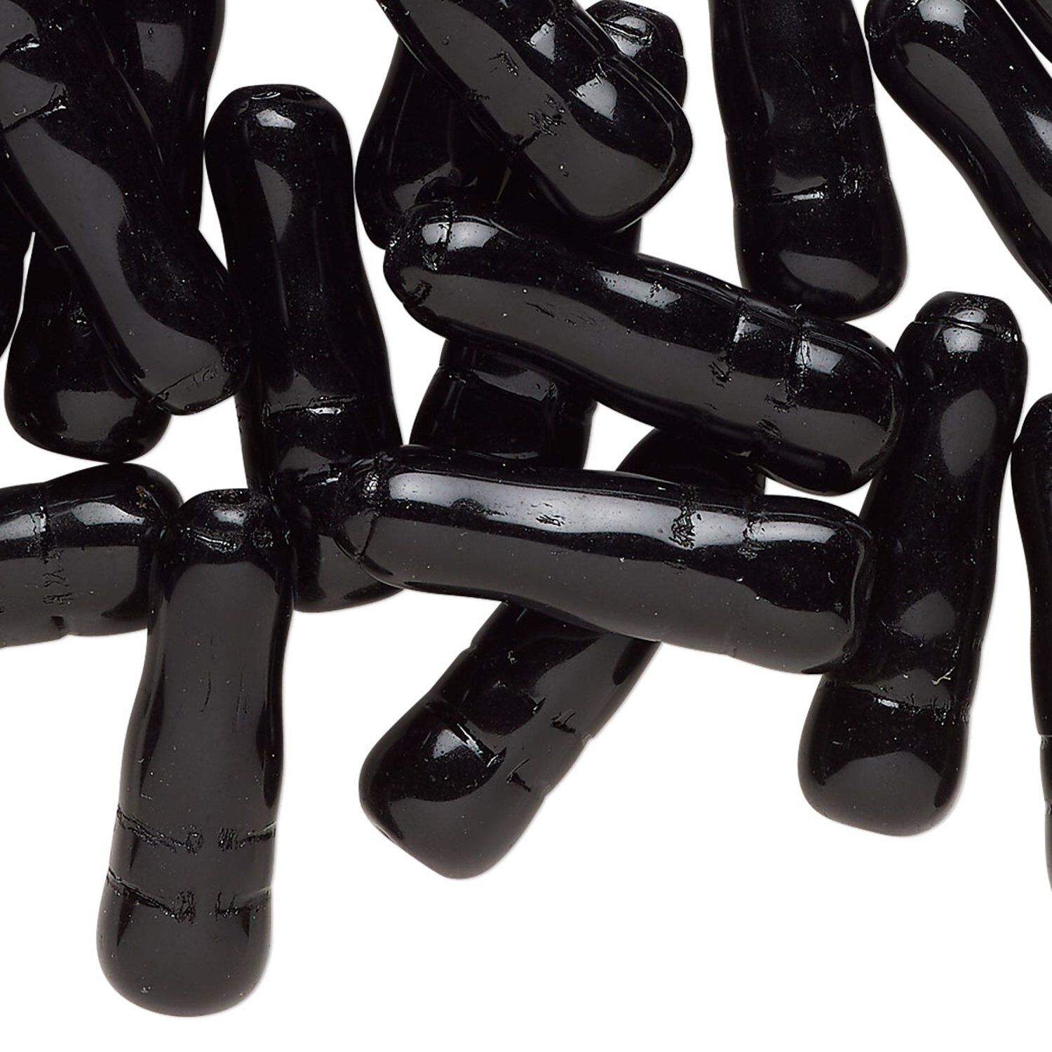 Bead, glass, opaque black, 23x7mm tapered capsule. Sold per 2-ounce pkg, approximately 35 beads.