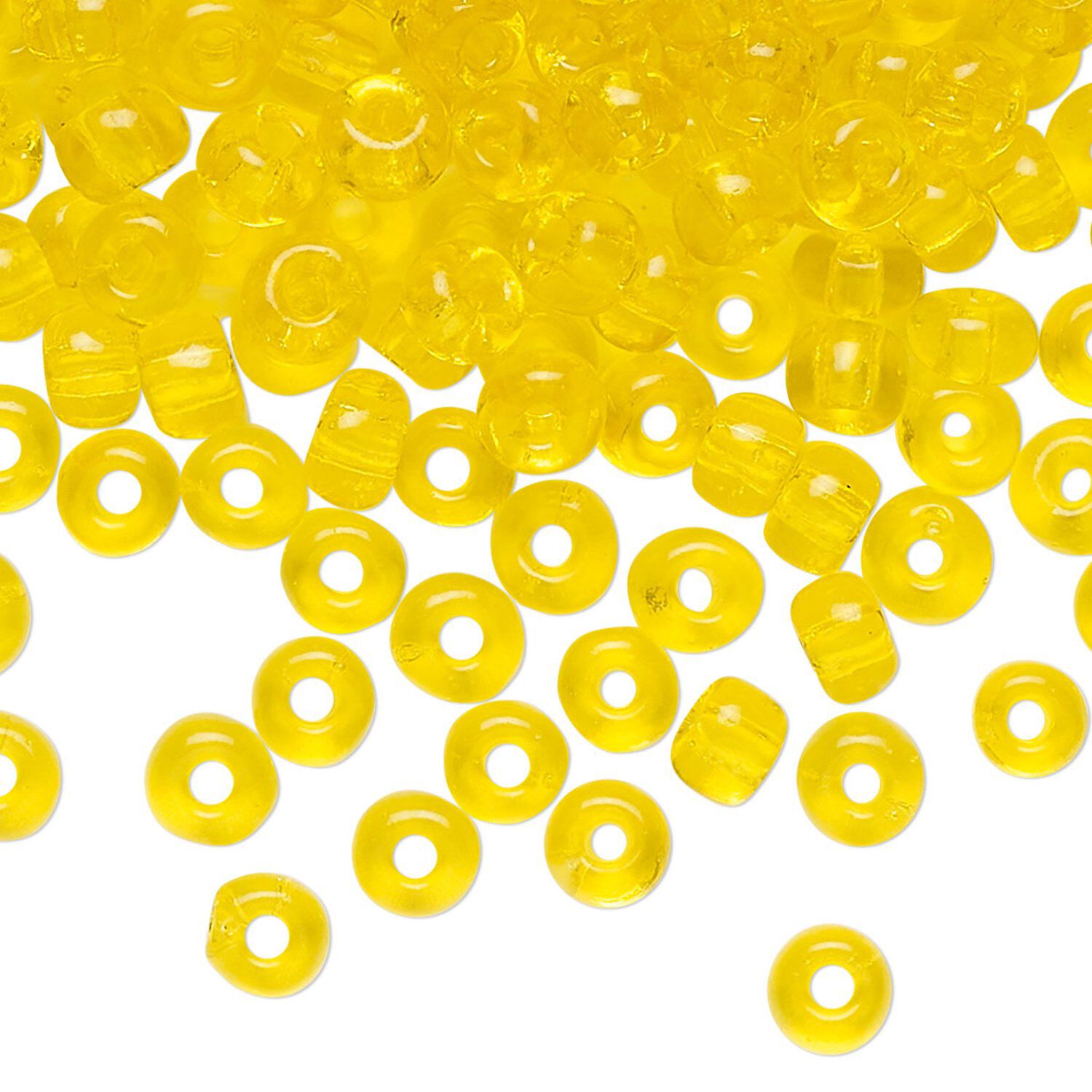 Seed bead glass 1pk #4 round, 50 gram transparent yellow-amber