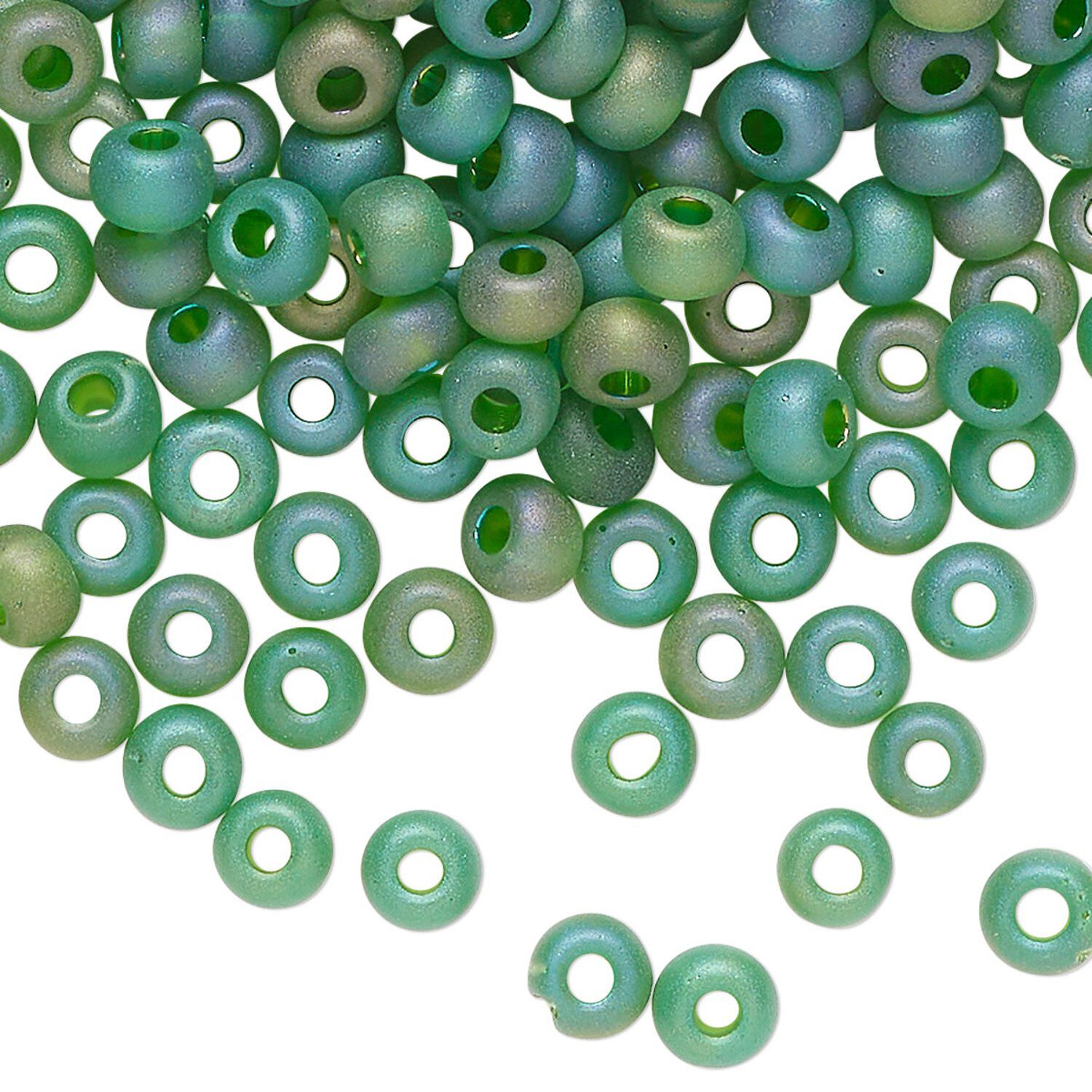 Seed bead glass 1pk #4 round, 50 gram translucent matte rainbow green