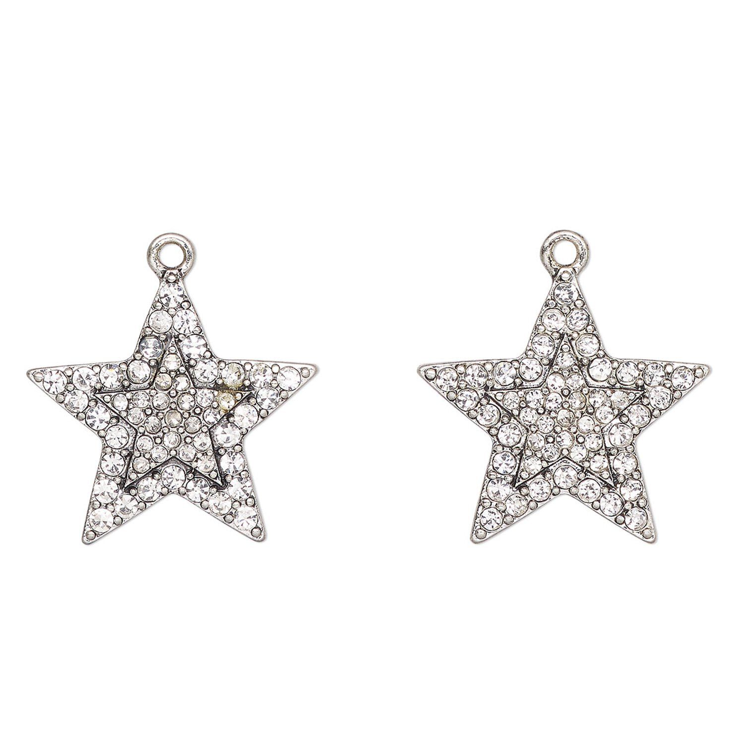 Charm, antique silver finish "pewter" (zinc-based alloy) and glass, clear, 25x24mm star. Sold per pkg of 2.