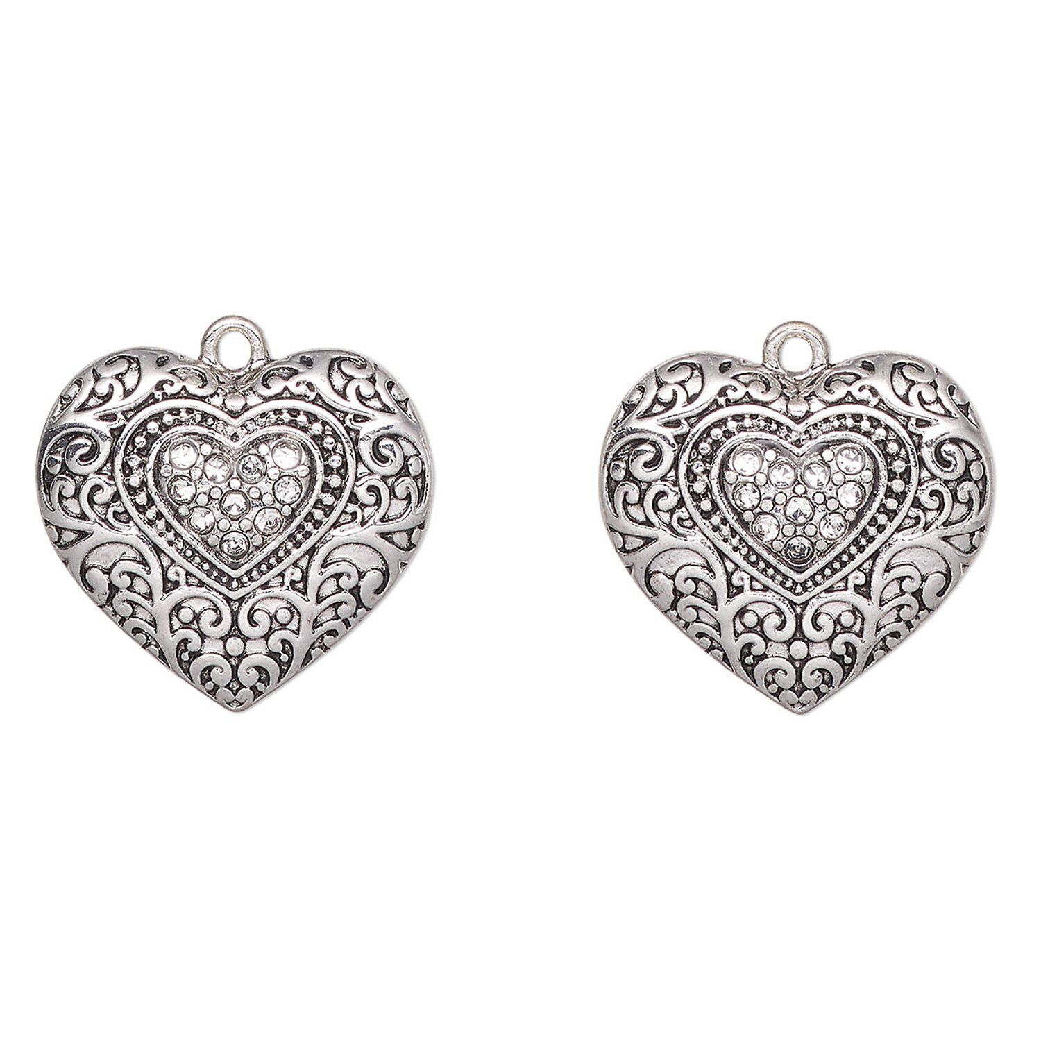 Charm, antique silver-finished "pewter" (zinc-based alloy), 23x21mm fancy heart. Sold per pkg of 2.