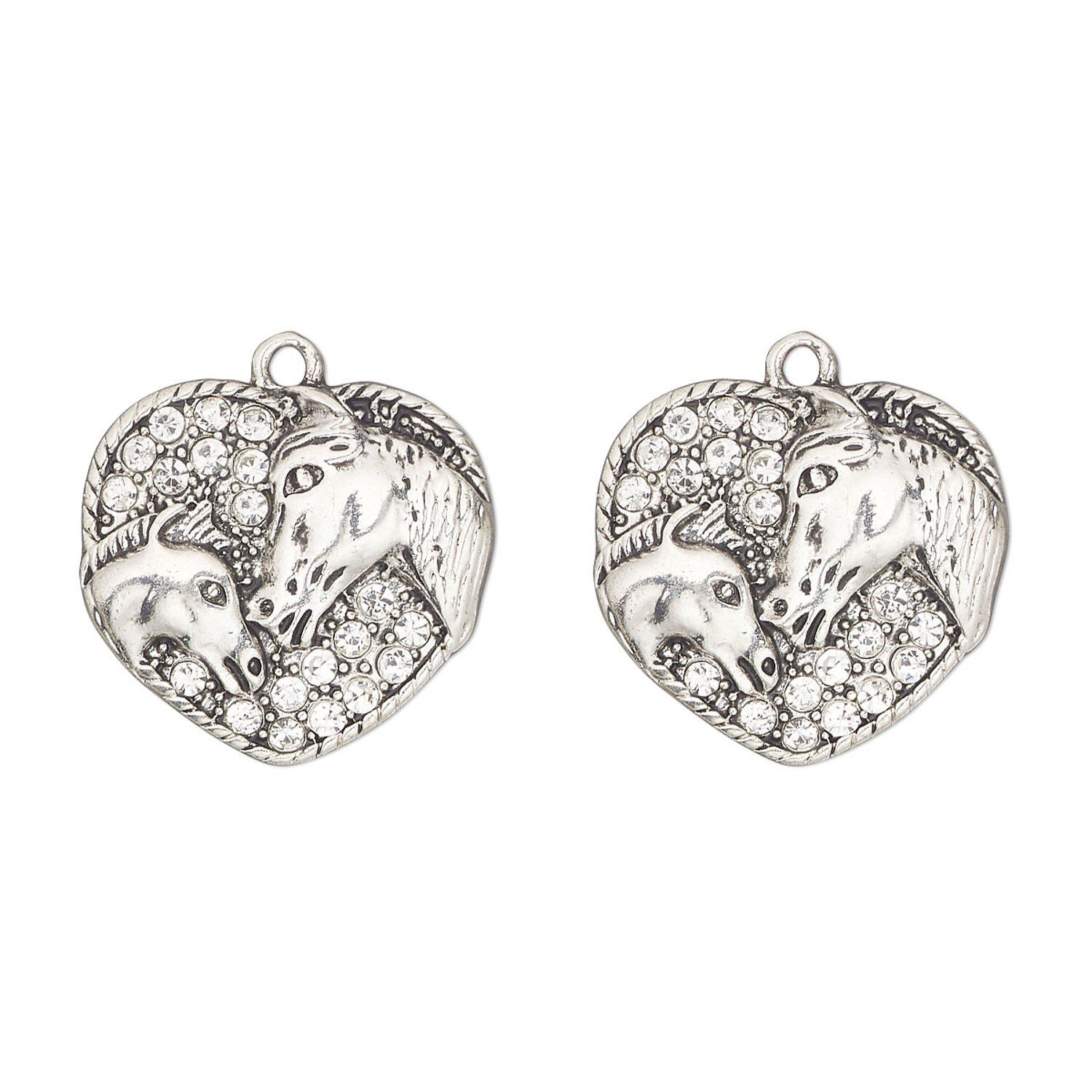 Zinc-based "pewter" horse charms personalize jewelry designs with instant style. Quality-made components are economical and great for quick resale. Add a jump ring to easily attach to charm bracelets, necklace chains, ear wires and more.