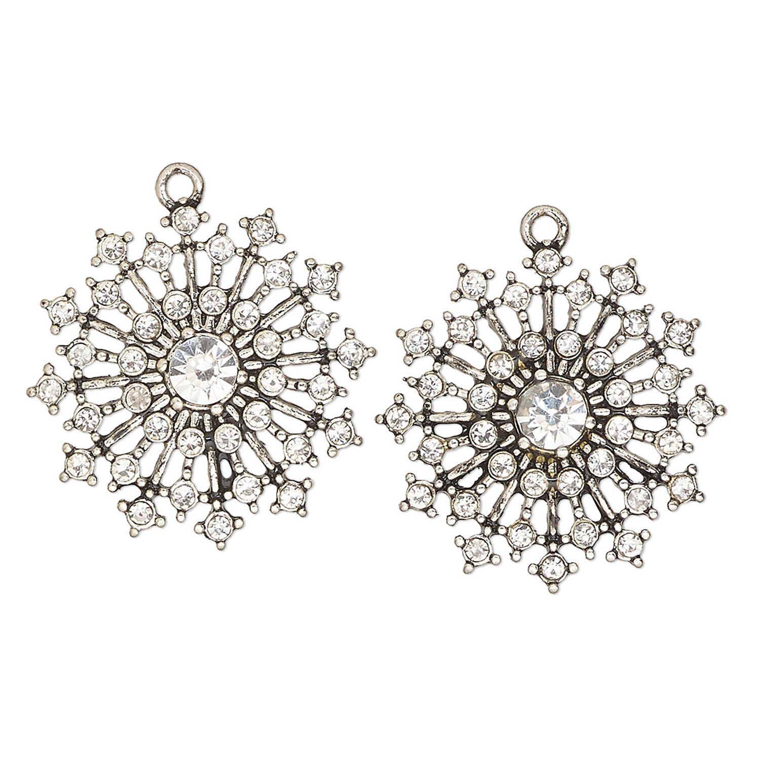 Charm, antique silver-finished "pewter" (zinc-based alloy) and glass, clear, 27mm single-sided snowflake. Sold per pkg of 2.