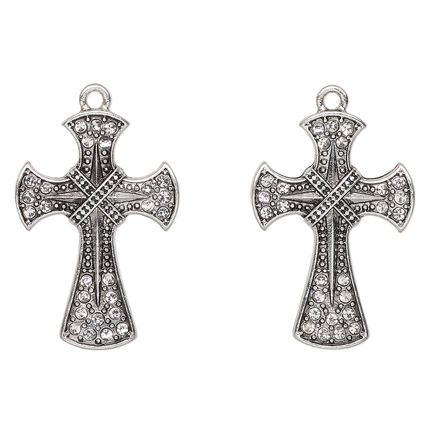 Focal, antique silver-finished "pewter" (zinc-based alloy), 31x21mm fancy cross. Sold per pkg of 2.