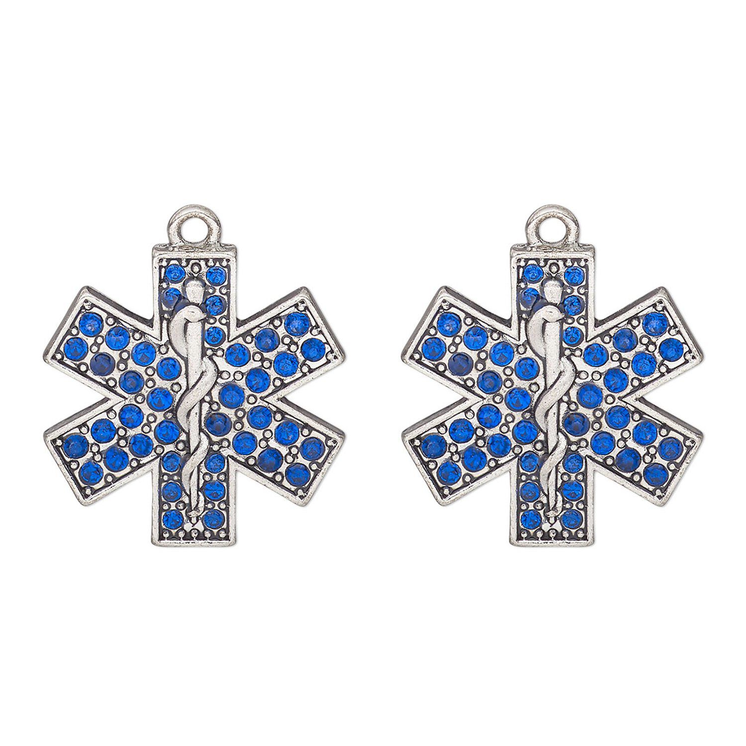 Antique silver-finished Star of Life charms feature crisp casting and clever details. These single-sided charms are ideal to use in themed jewelry designs for customers in the medical field and make eye-catching additions to resale lines.