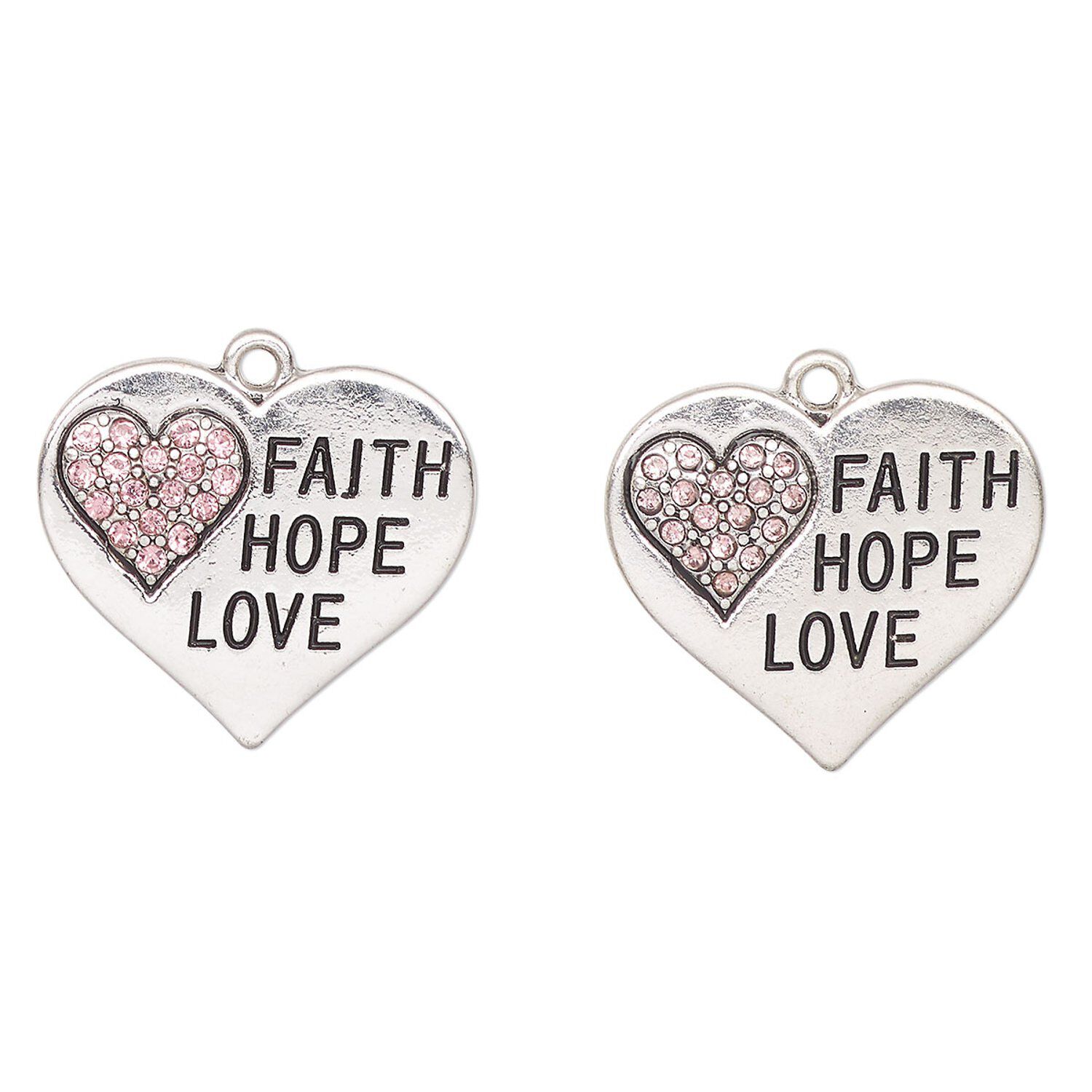 Charm, antique silver-finished enamel "pewter" (zinc-based alloy) and glass, pink and black, 25x22mm heart with "Faith / Hope / Love". Sold per pkg of 2.