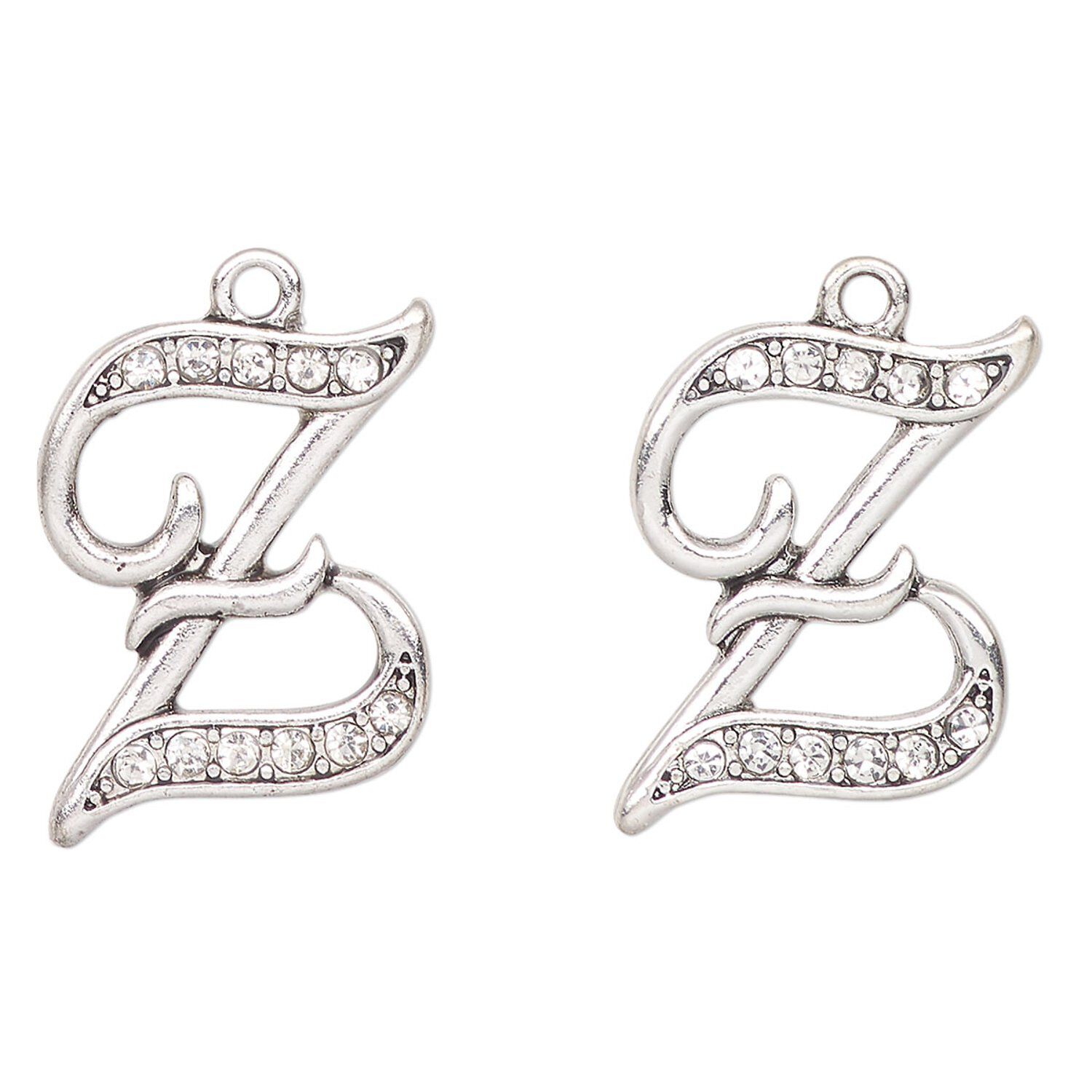 Charm, antique silver-finished "pewter" (zinc-based alloy) and glass, clear, 23x18mm letter "Z". Sold per pkg of 2.