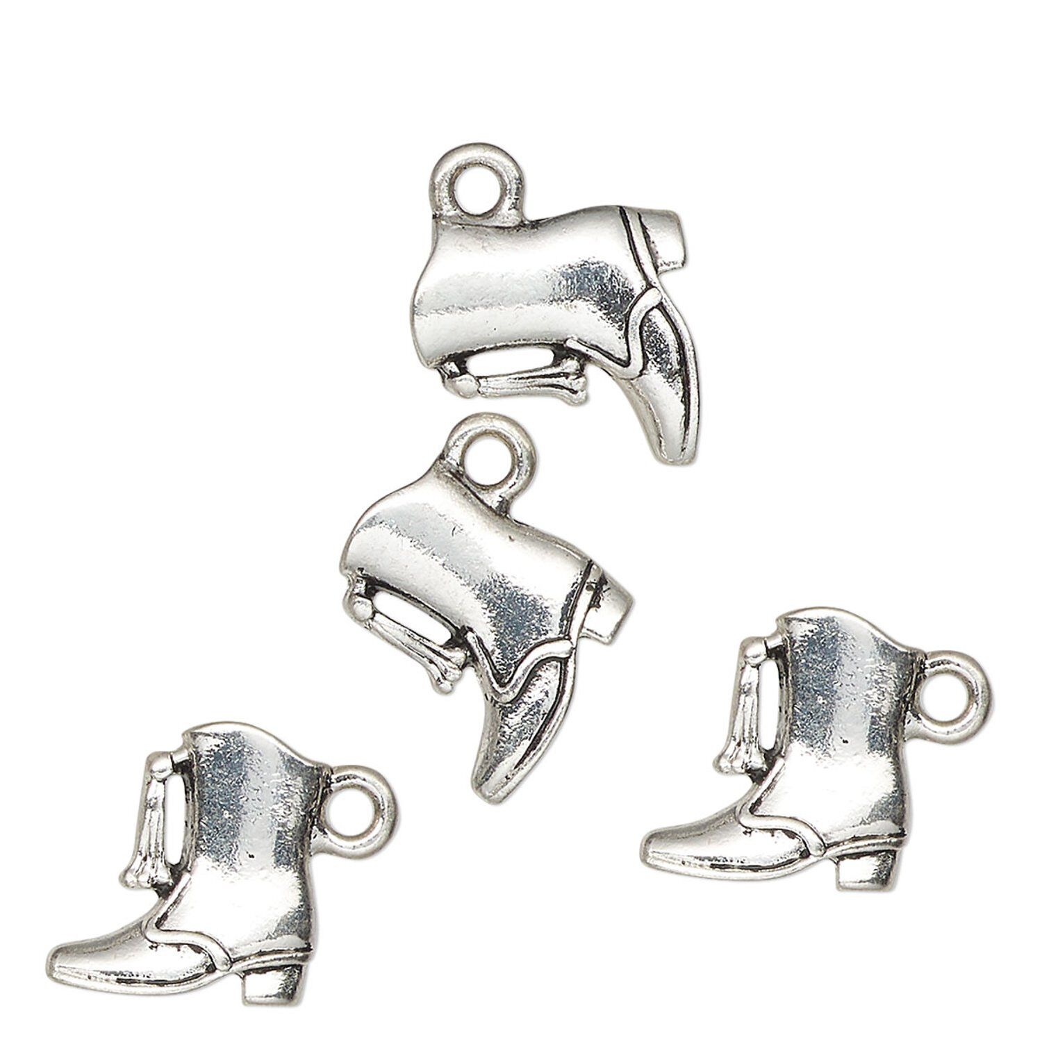 Charm, antique silver-finished "pewter" (zinc-based alloy), 14x13mm cowboy boot. Sold per pkg of 4.