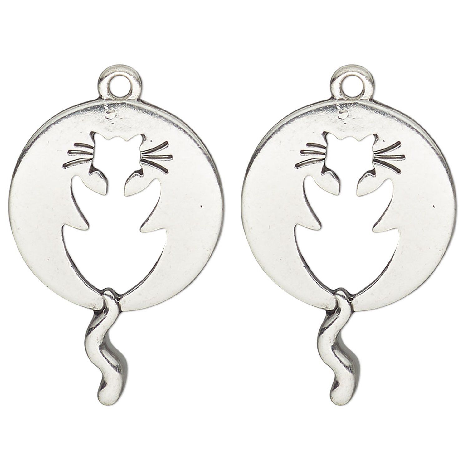 Antique silver-finished kitty charms feature crisp casting and clever details. These single-sided charms are ideal to use in themed jewelry designs and make eye-catching additions to resale lines.