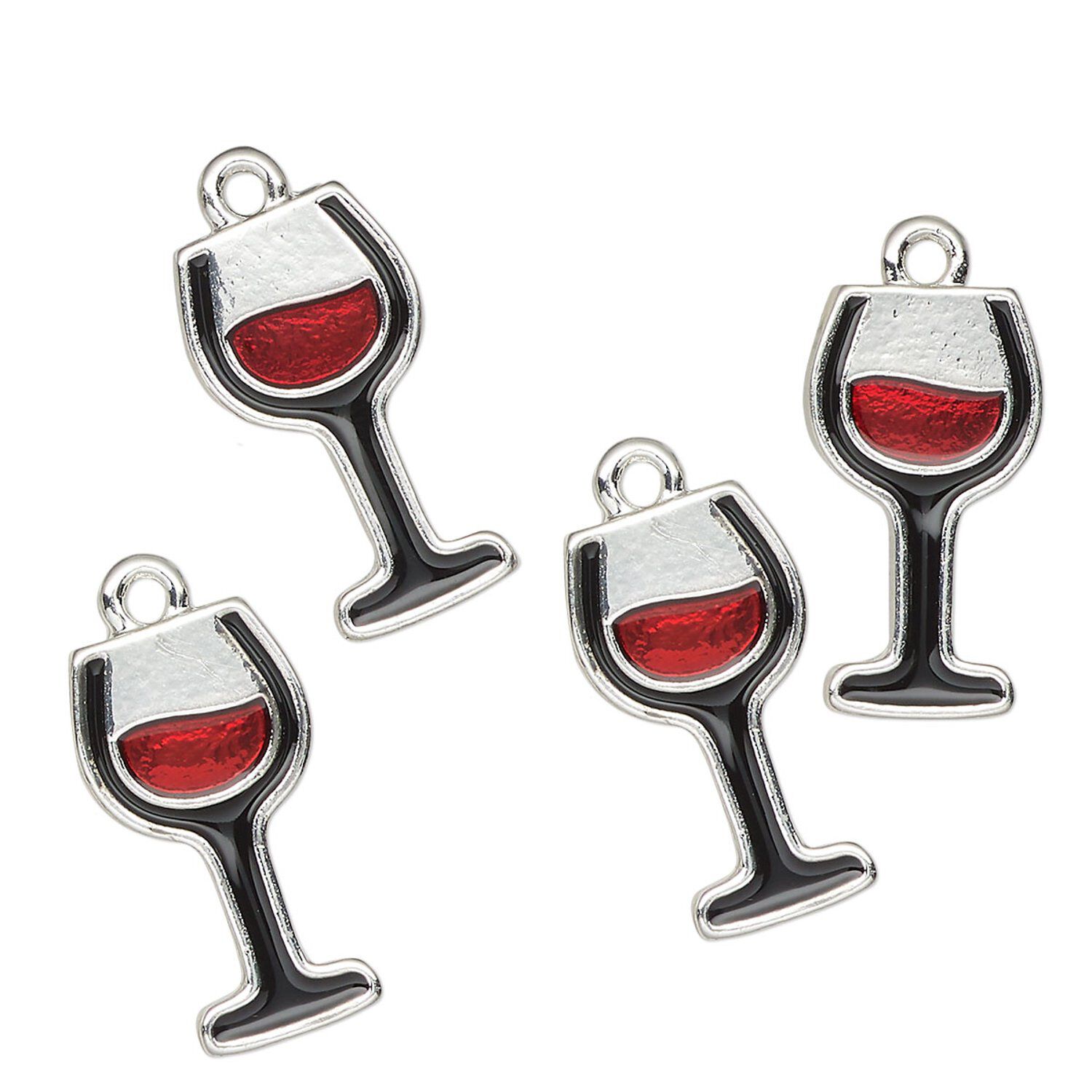 Charm, antique silver-finished enamel "pewter" (zinc-based alloy), red and black, 20x11mm wine glass. Sold per pkg of 4.