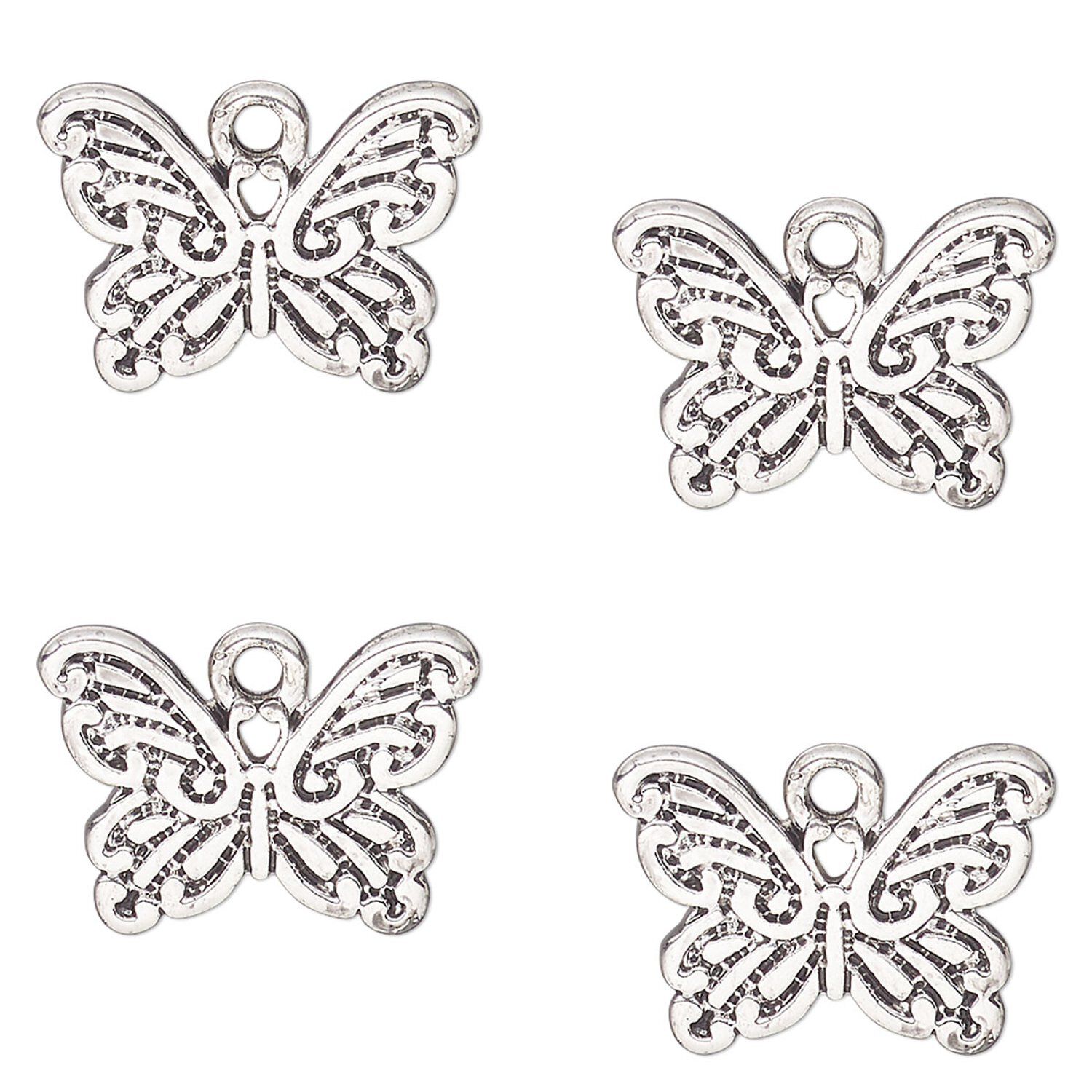 Charm, antique silver-finished "pewter" (zinc-based alloy) , 18x10mm double-sided butterfly. Sold per pkg of 4.