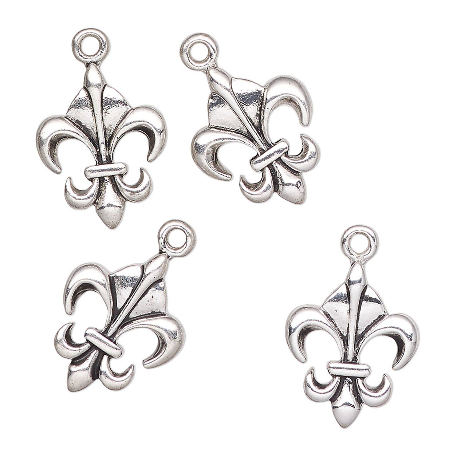 Charm, antique silver-finished "pewter" (zinc-based alloy), 16x13mm fleur-de-lis. Sold per pkg of 4.