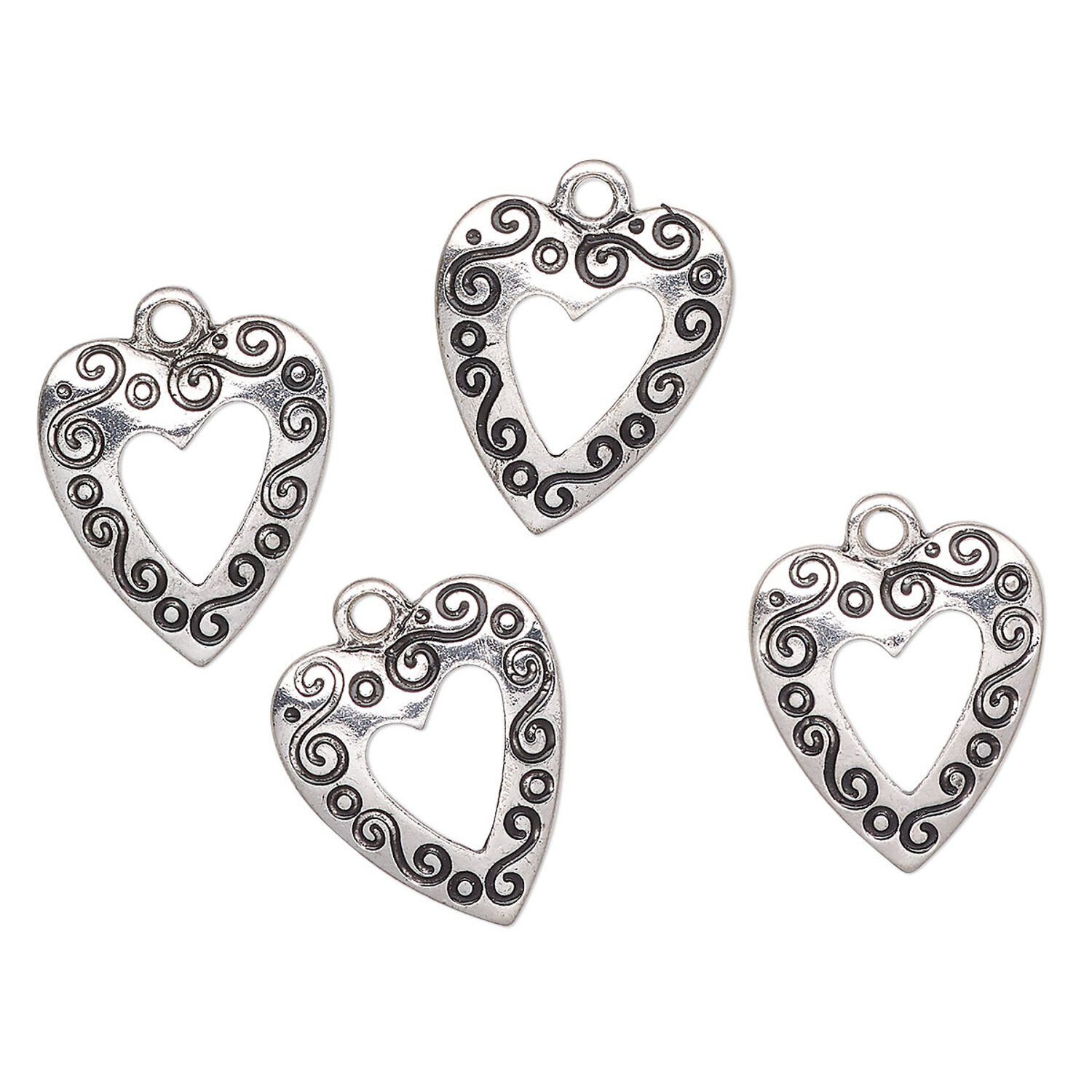 Charm, antique silver-finished "pewter" (zinc-based alloy), 17x16mm heart with swirls. Sold per pkg of 4.
