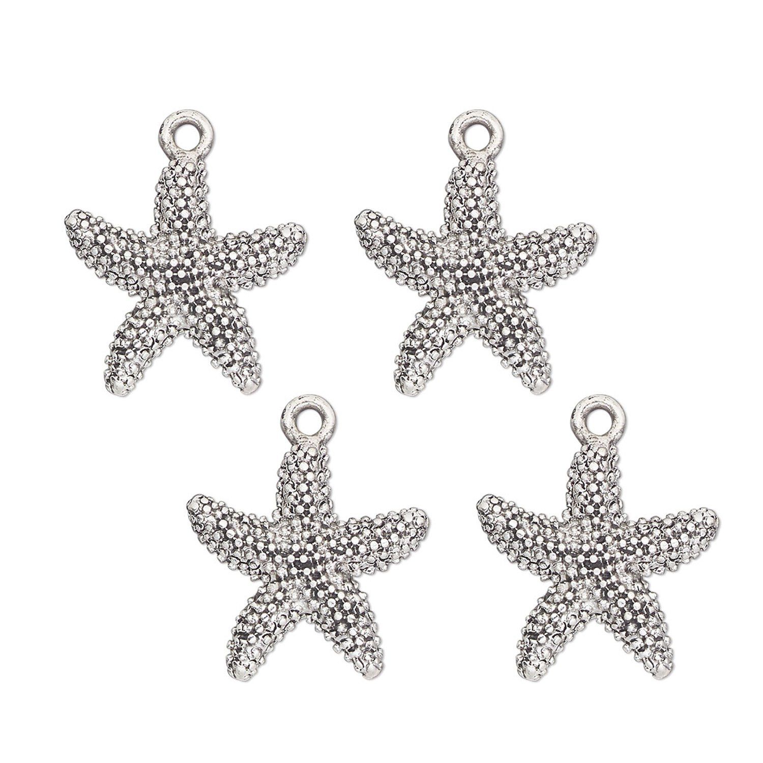 Charm, antique silver-finished "pewter" (zinc-based alloy) , 19mm single-sided starfish. Sold per pkg of 4.