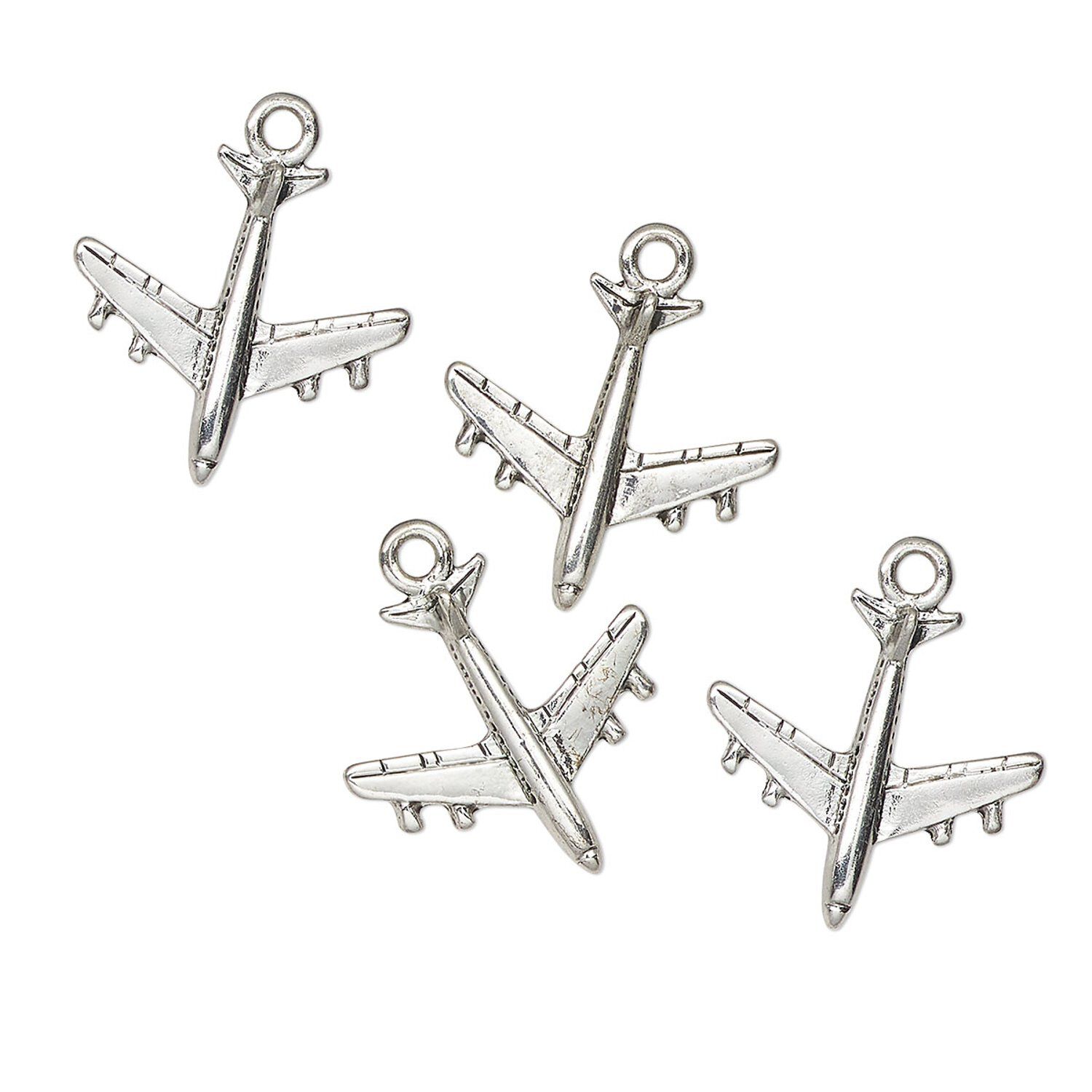 Charm, antique silver-finished "pewter" (zinc-based alloy), 18mm airplane. Sold per pkg of 4.