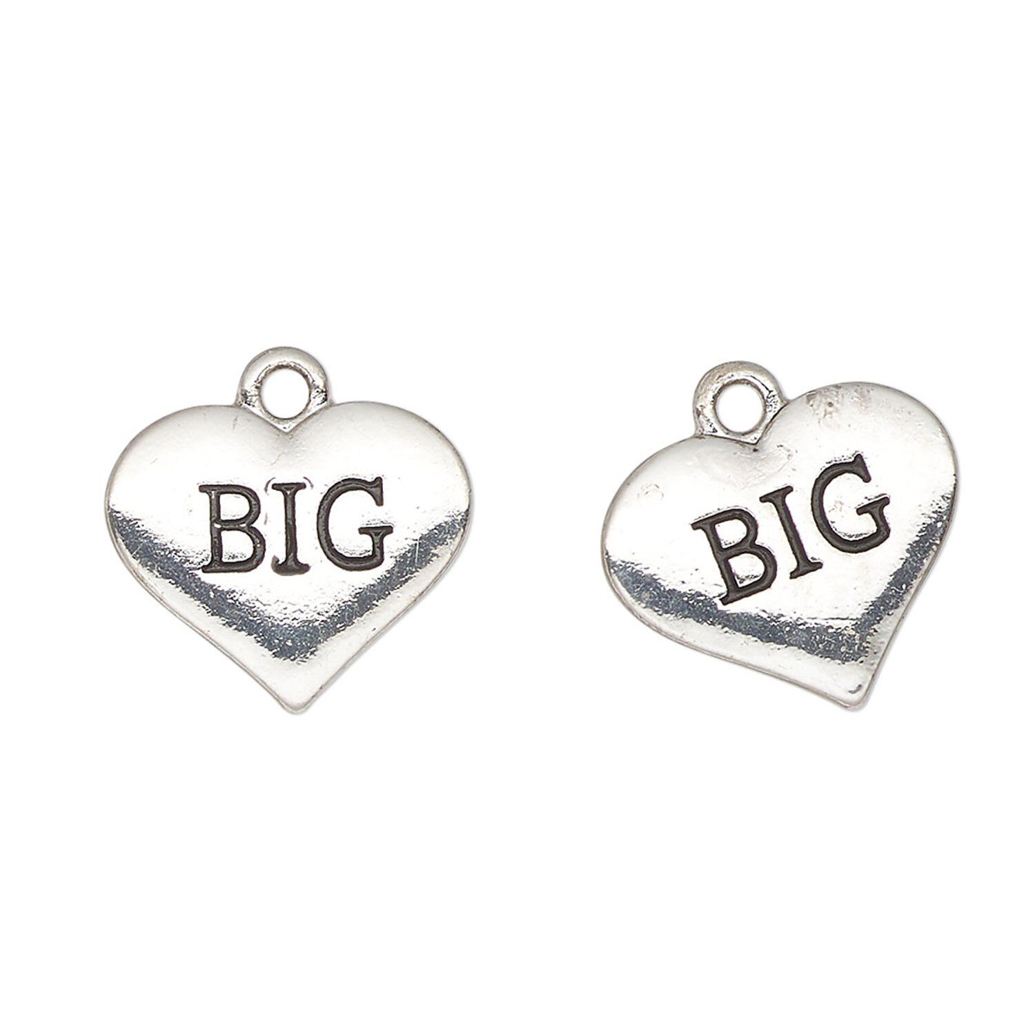 Charm, antique silver-finished enamel "pewter" (zinc-based alloy), black, 16x13mm heart with "Big". Sold per pkg of 2.