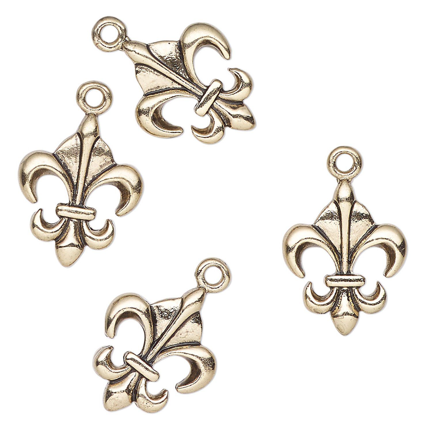 Charm, antique gold-finished "pewter" (zinc-based alloy), 16x13mm fleur-de-lis. Sold per pkg of 4.