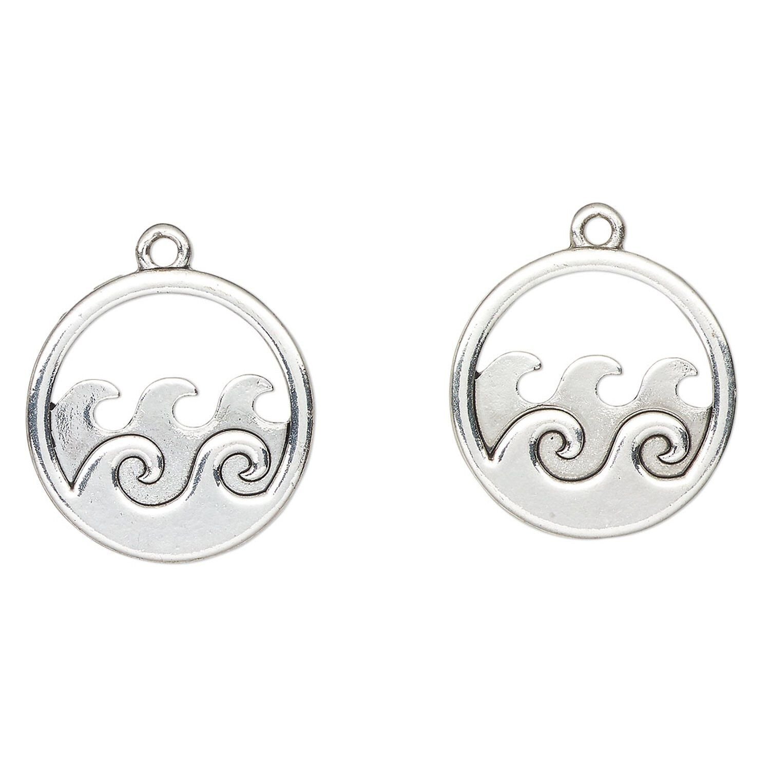 Charm, antique silver-finished "pewter" (zinc-based alloy), 23mm round with waves cutout. Sold per pkg of 2.