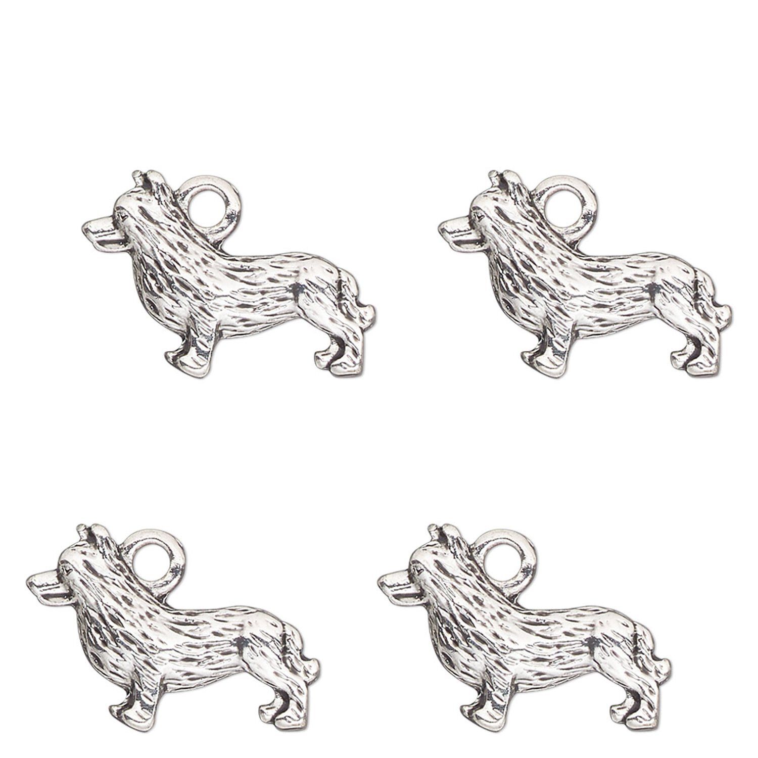 Zinc-based "pewter" dog charms personalize jewelry designs with instant style. Quality-made components are economical and great for quick resale. Add a jump ring to easily attach to charm bracelets, necklace chains, ear wires and more.