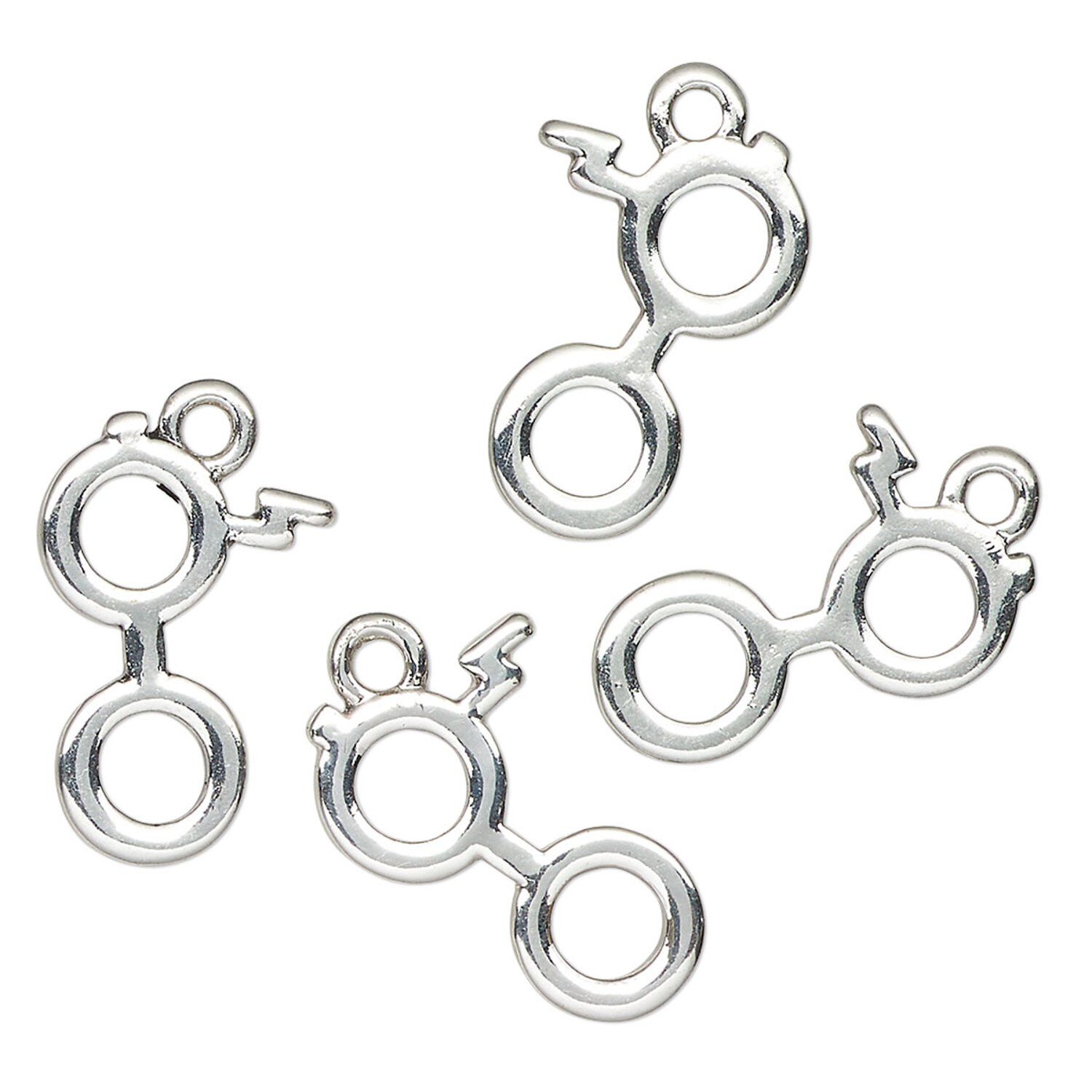 Charm, antique silver-finished "pewter" (zinc-based alloy), 17x16mm eyeglasses. Sold per pkg of 4.