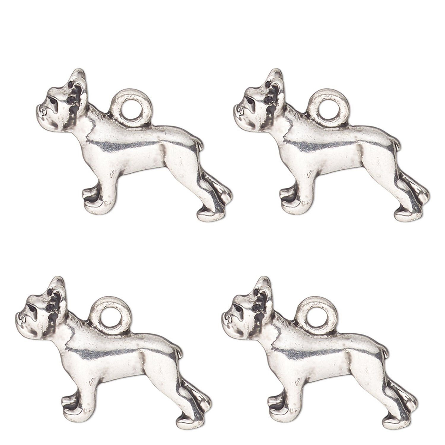 Zinc-based "pewter" dog charms personalize jewelry designs with instant style. Quality-made components are economical and great for quick resale. Add a jump ring to easily attach to charm bracelets, necklace chains, ear wires and more.